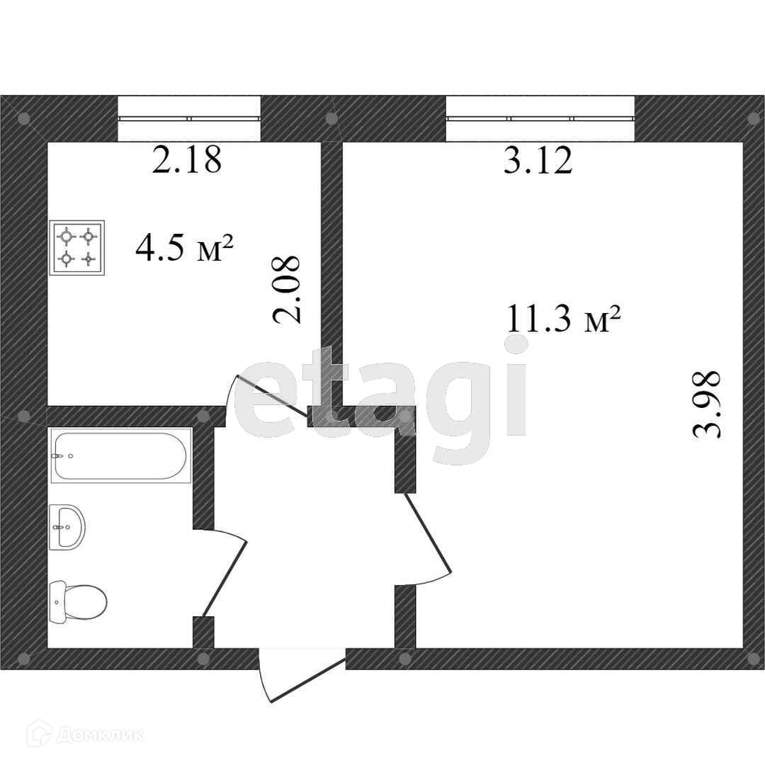 1-комнатная квартира, 22 м2, этаж 3 / 5, на продажу в Белгороде, улица Макаренко, 4Б
