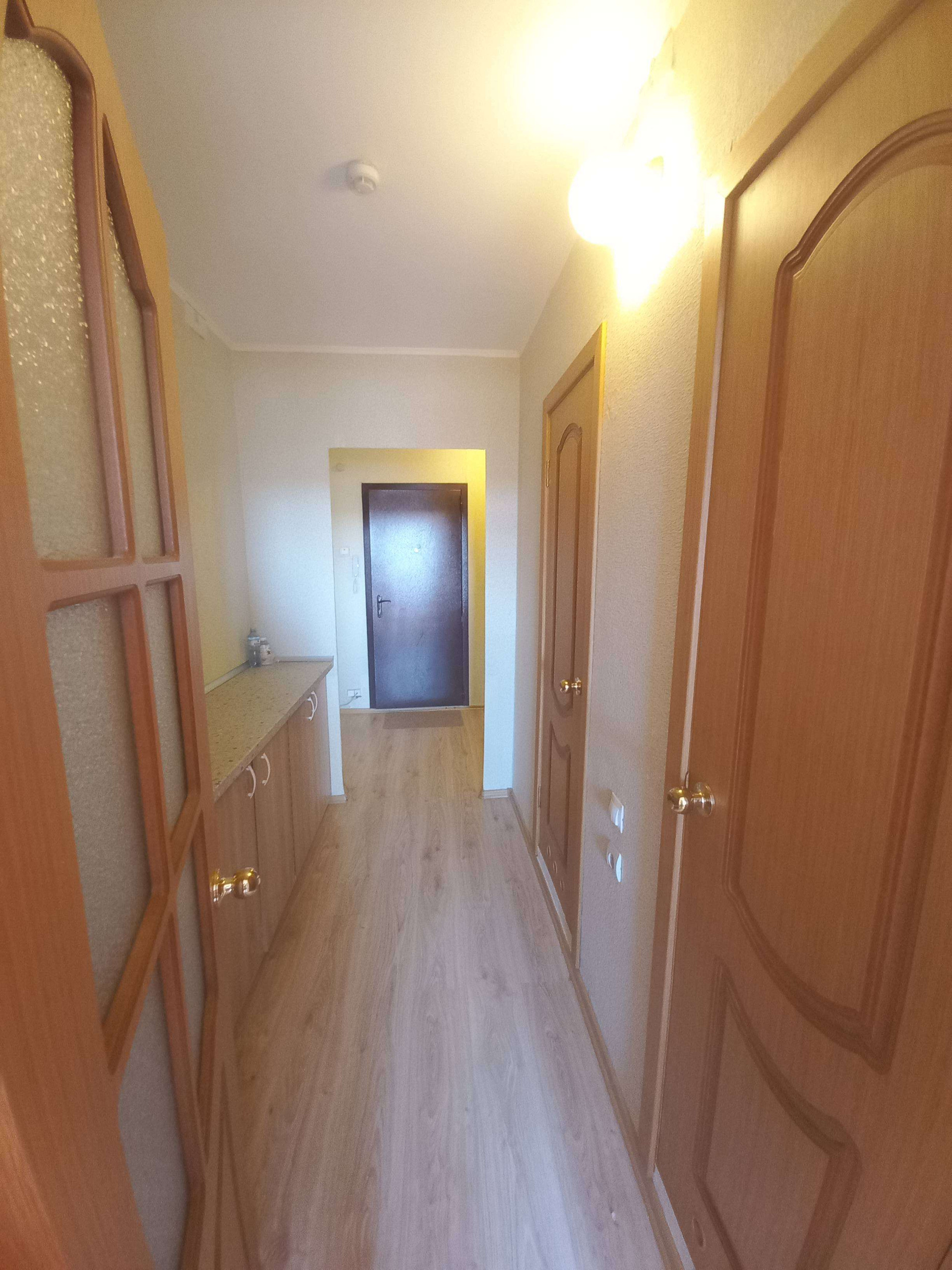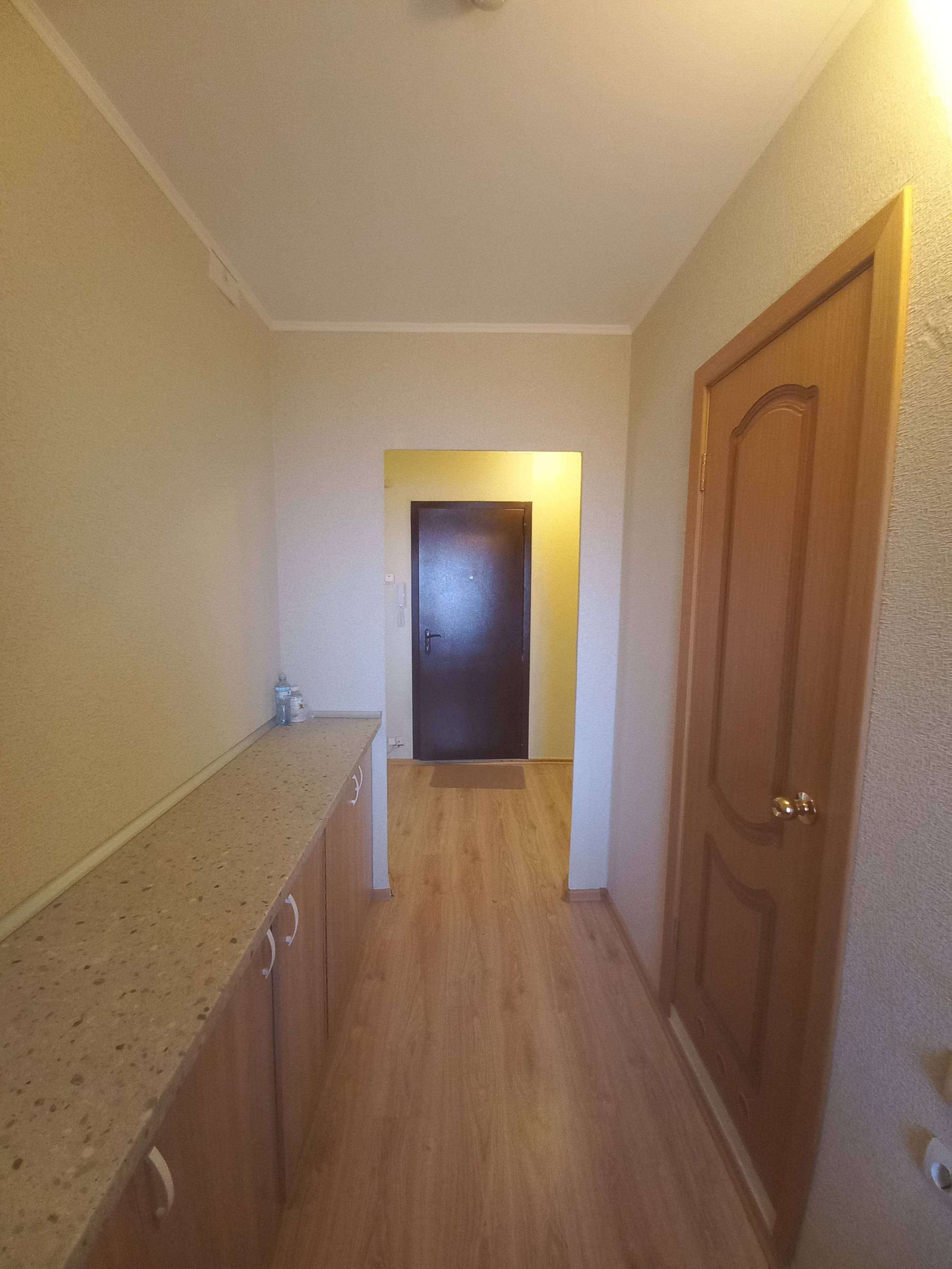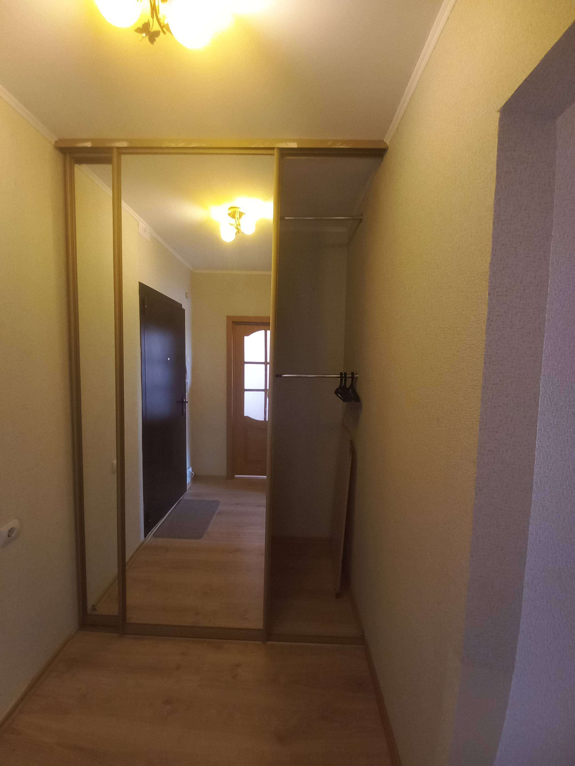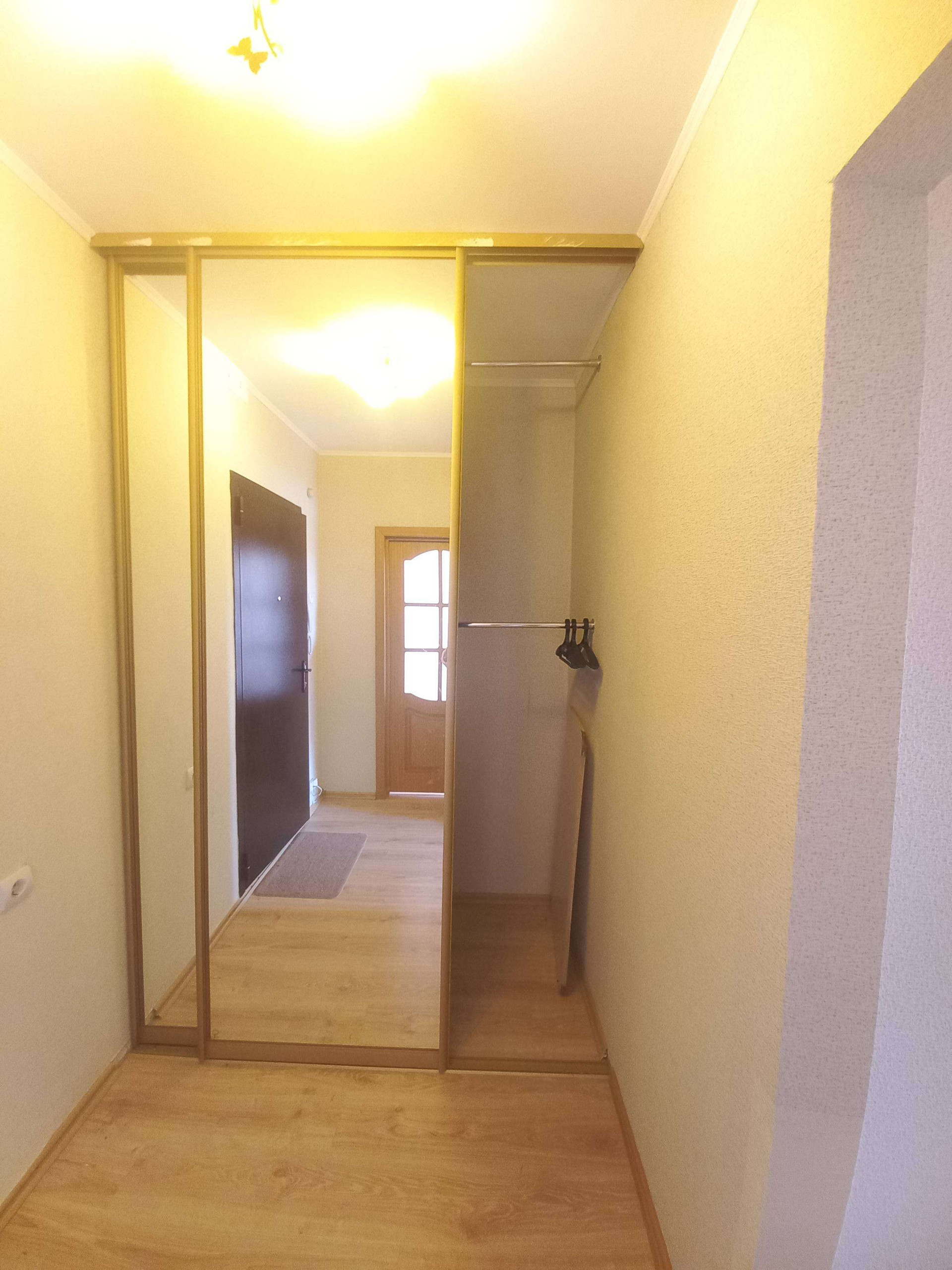 В коридоре оборудована зеркальная гардеробная с удобной зоной хранения, а также встроенная тумба -комод , для хозяйственных нужд.