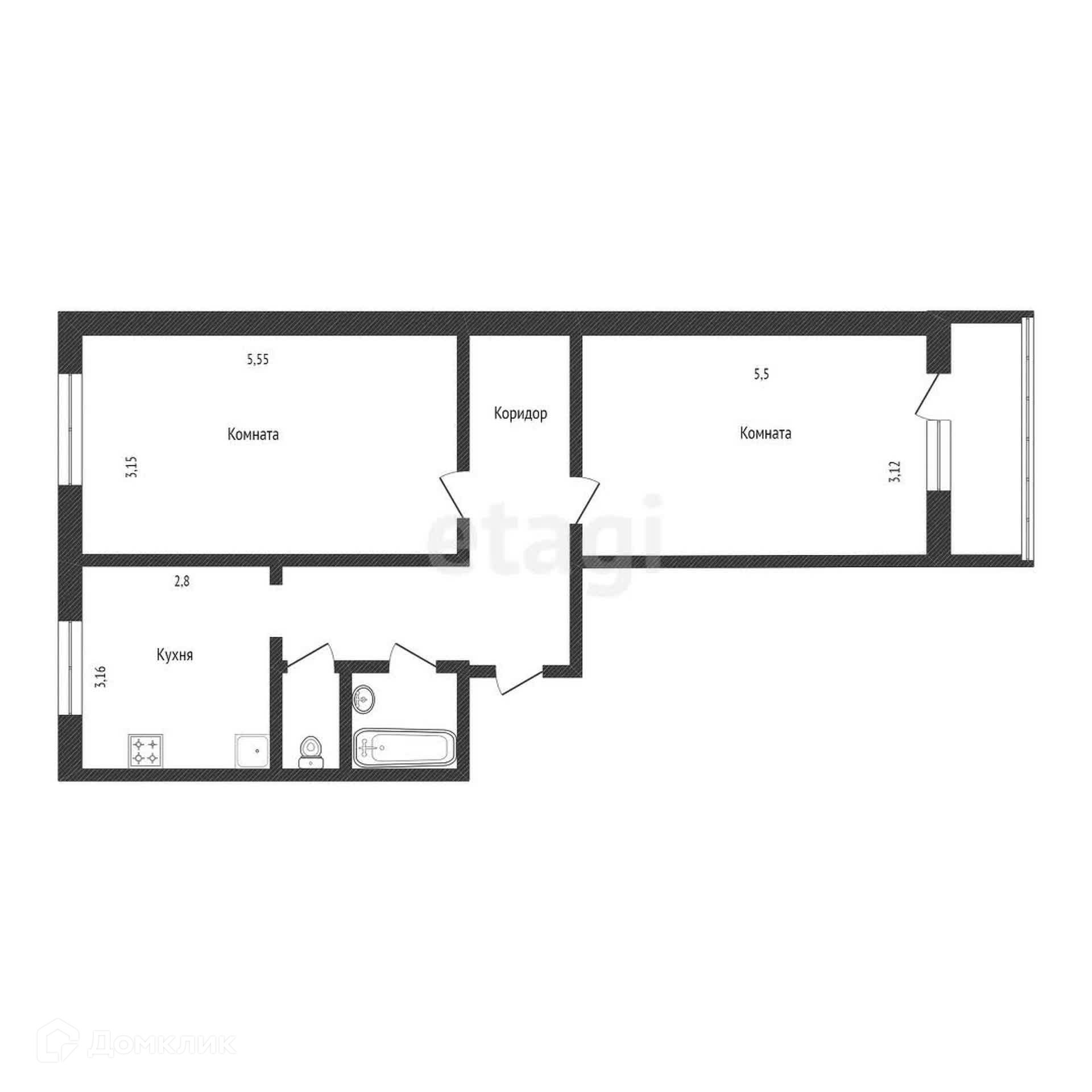 Общая площадь 54.5 м2