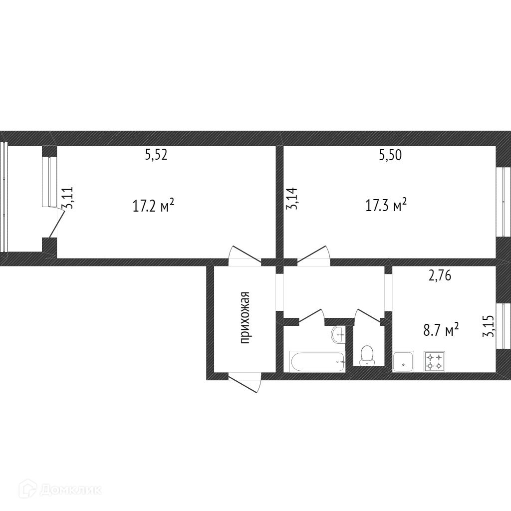 Общая площадь 46 м2