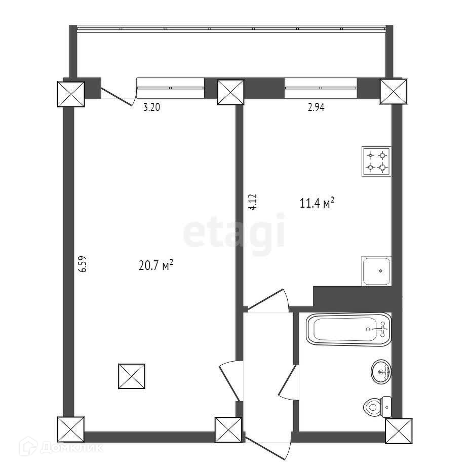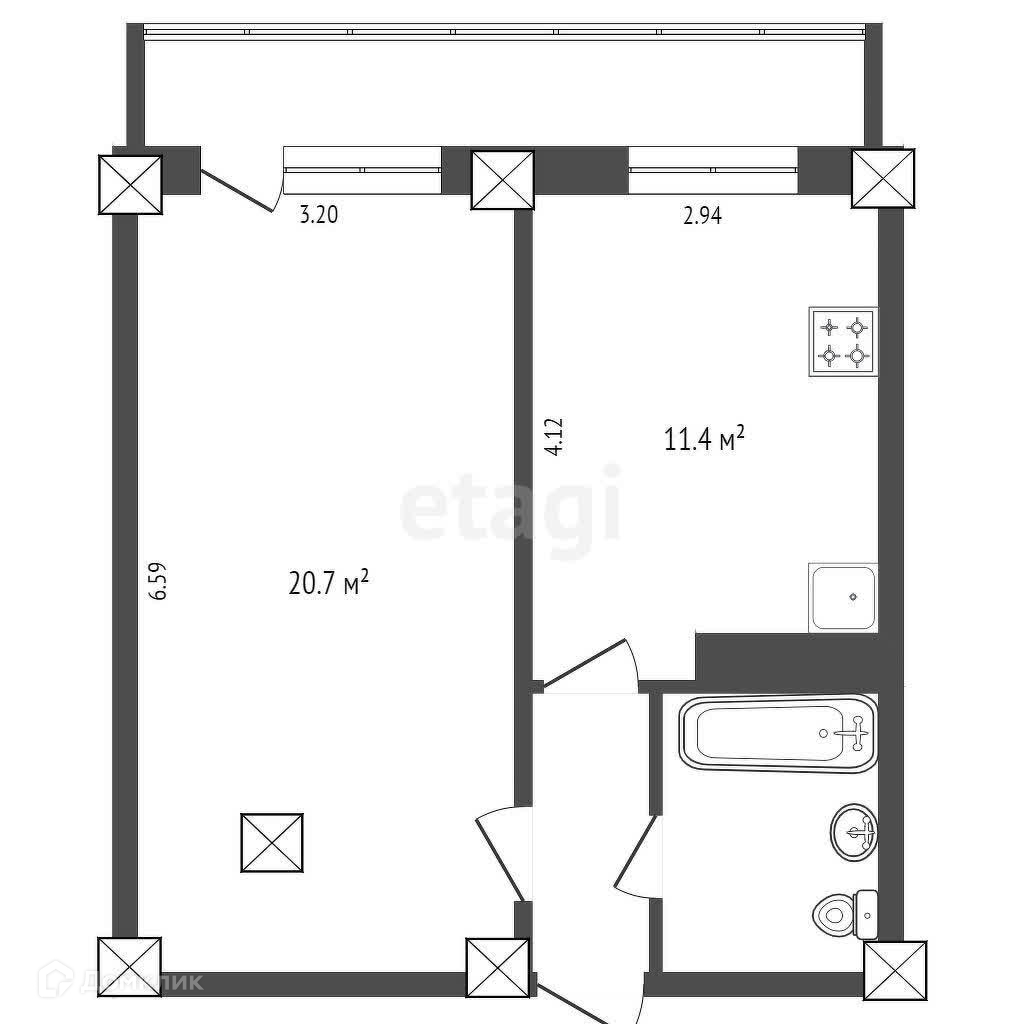Балкон, лоджия 1 балкон