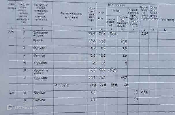 Общая площадь 74.6 м2