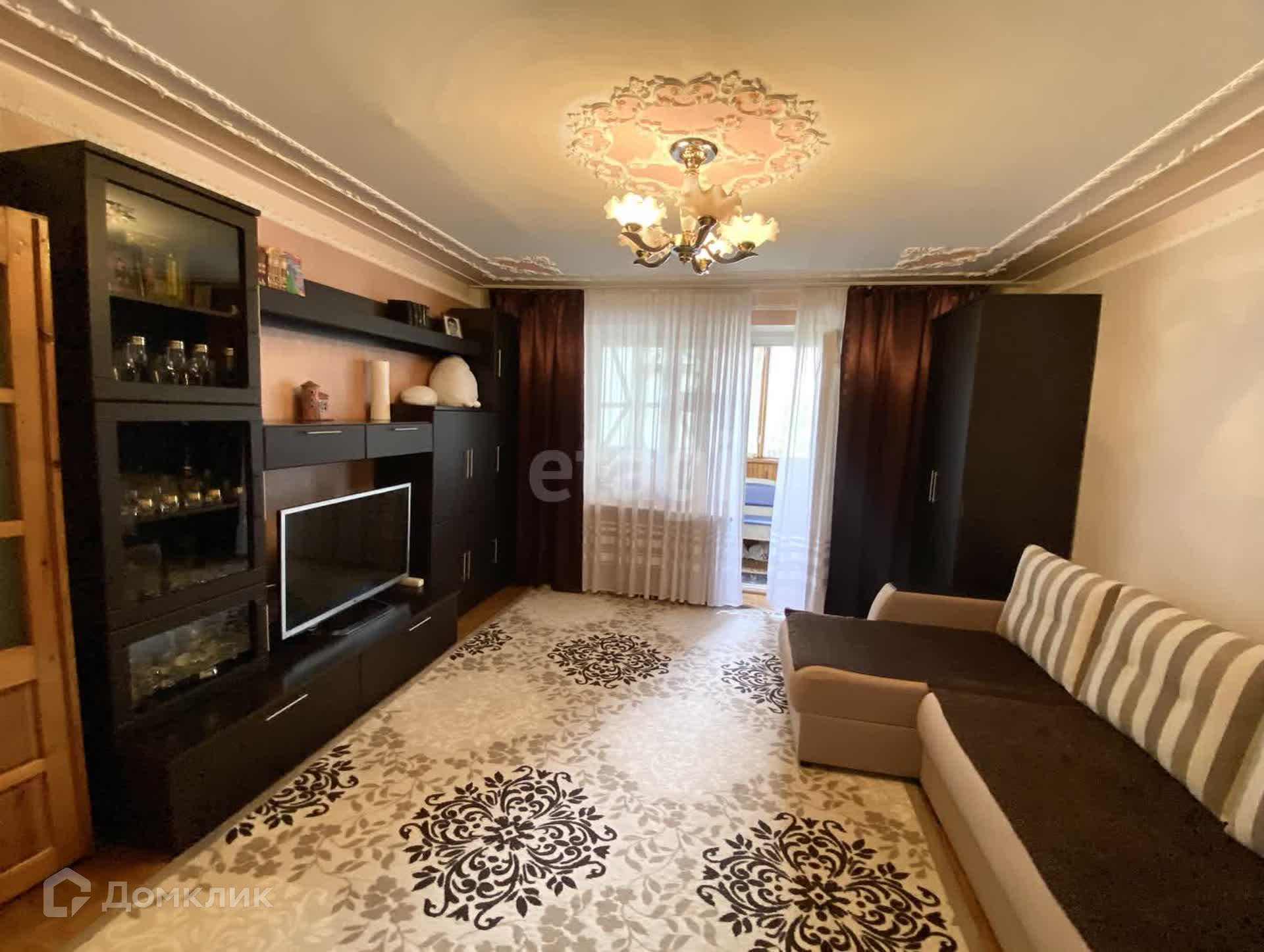 Просторная, удобная планировка. Комнаты большие, светлые, правильной формы, из зала есть выход на просторный балкон. Санузел и ванна - разделены, оба в плитке. Потолки выравнены, украшены лепниной, на полу - линолеум. В доме имеется пассажирский лифт. Также, около дома достаточно парковочных мест, поэтому всегда будет место под машину.