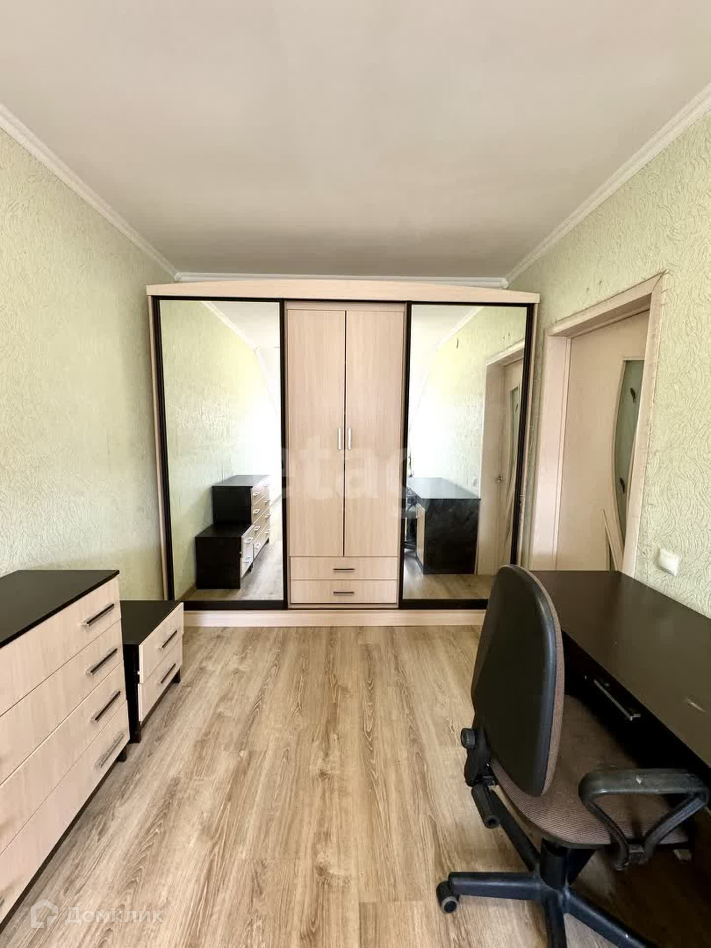 Ремонт косметический. Стены и потолки выровнены. На полу ламинат. Стены обои, санузел в пластике. При продаже остается встроенная кухня, шкаф-купе в прихожей, шкаф в спальне.