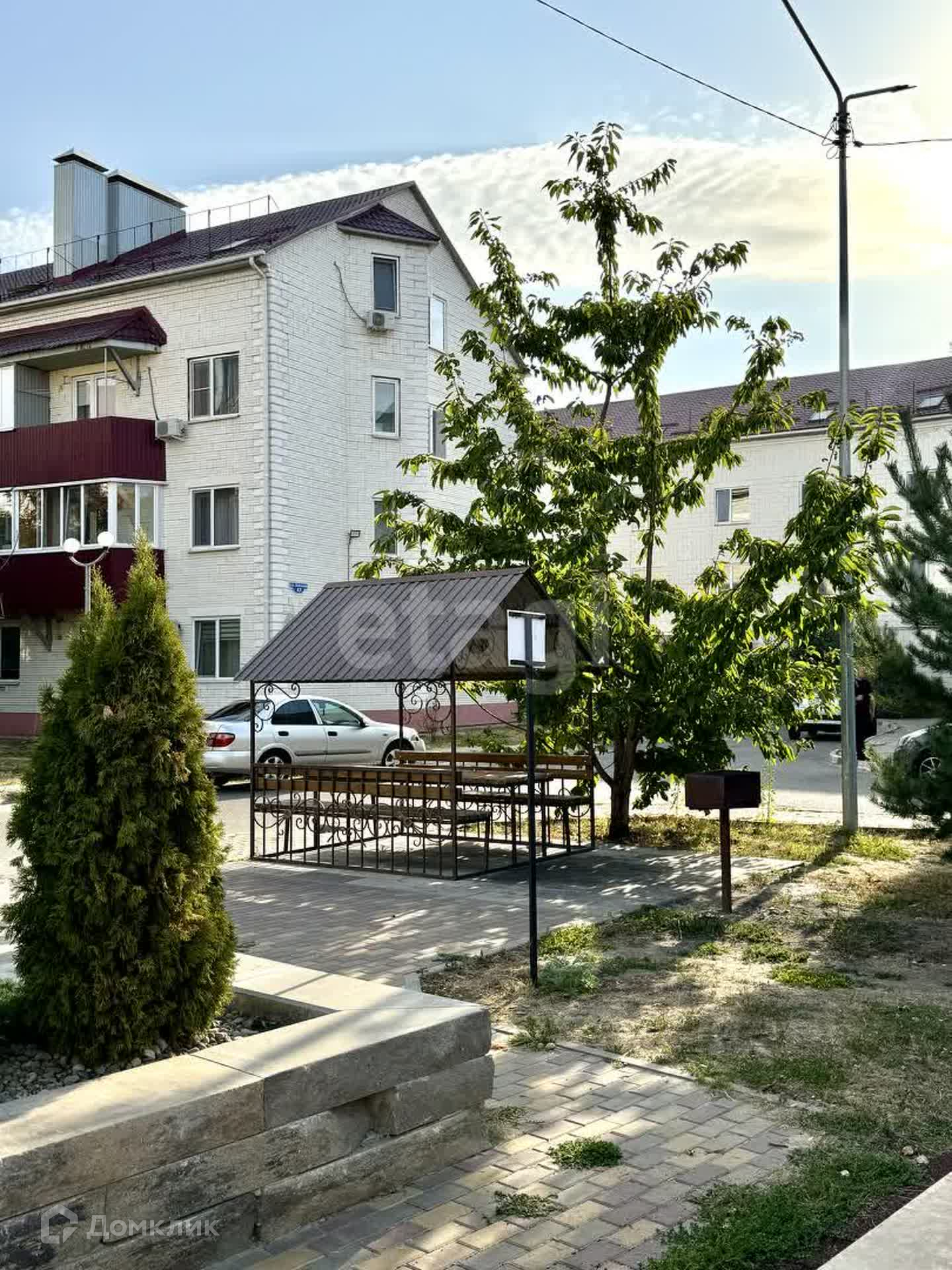 Во дворе есть современная детская и спортивная площадка, беседка и зона барбекю.