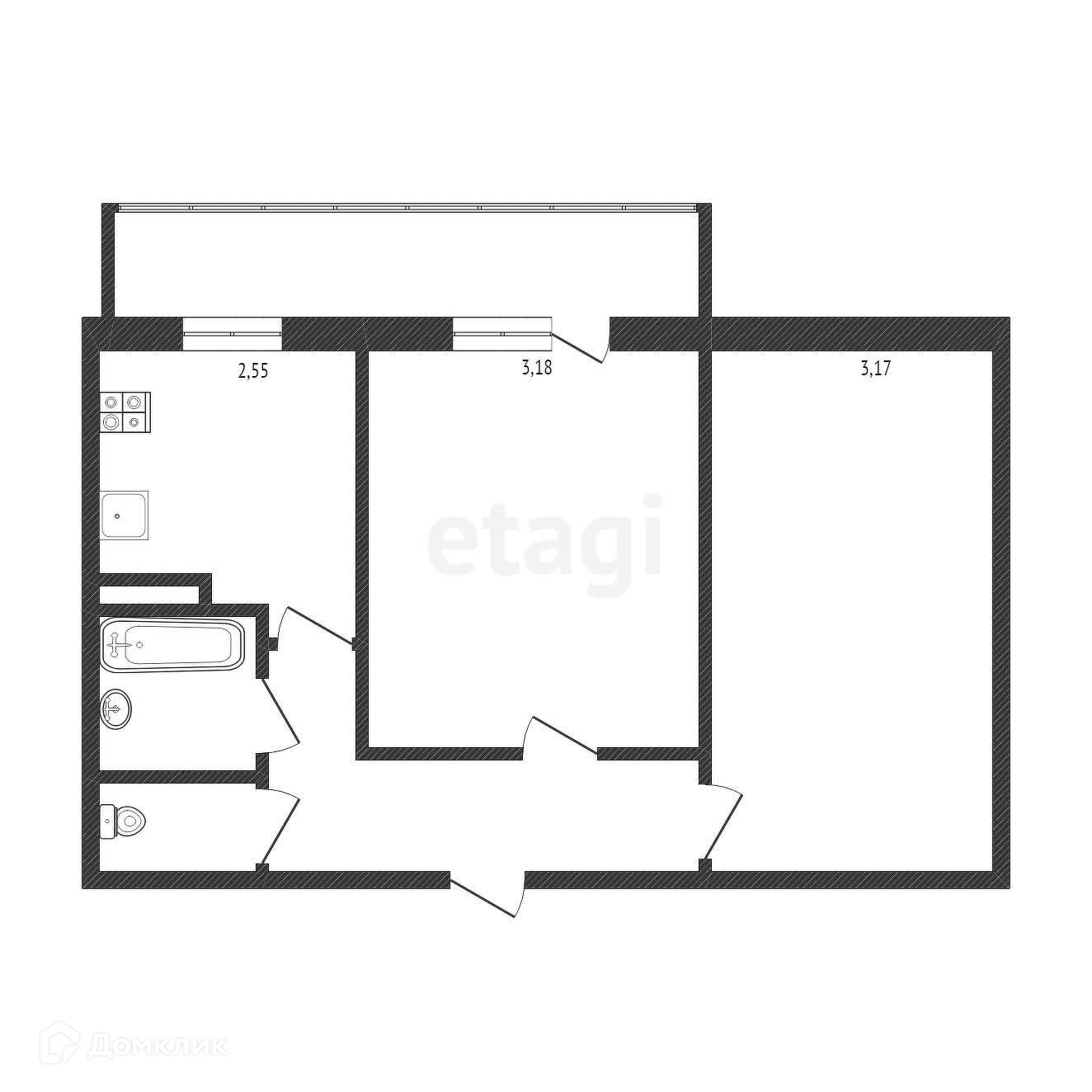 Балкон, лоджия 1 балкон