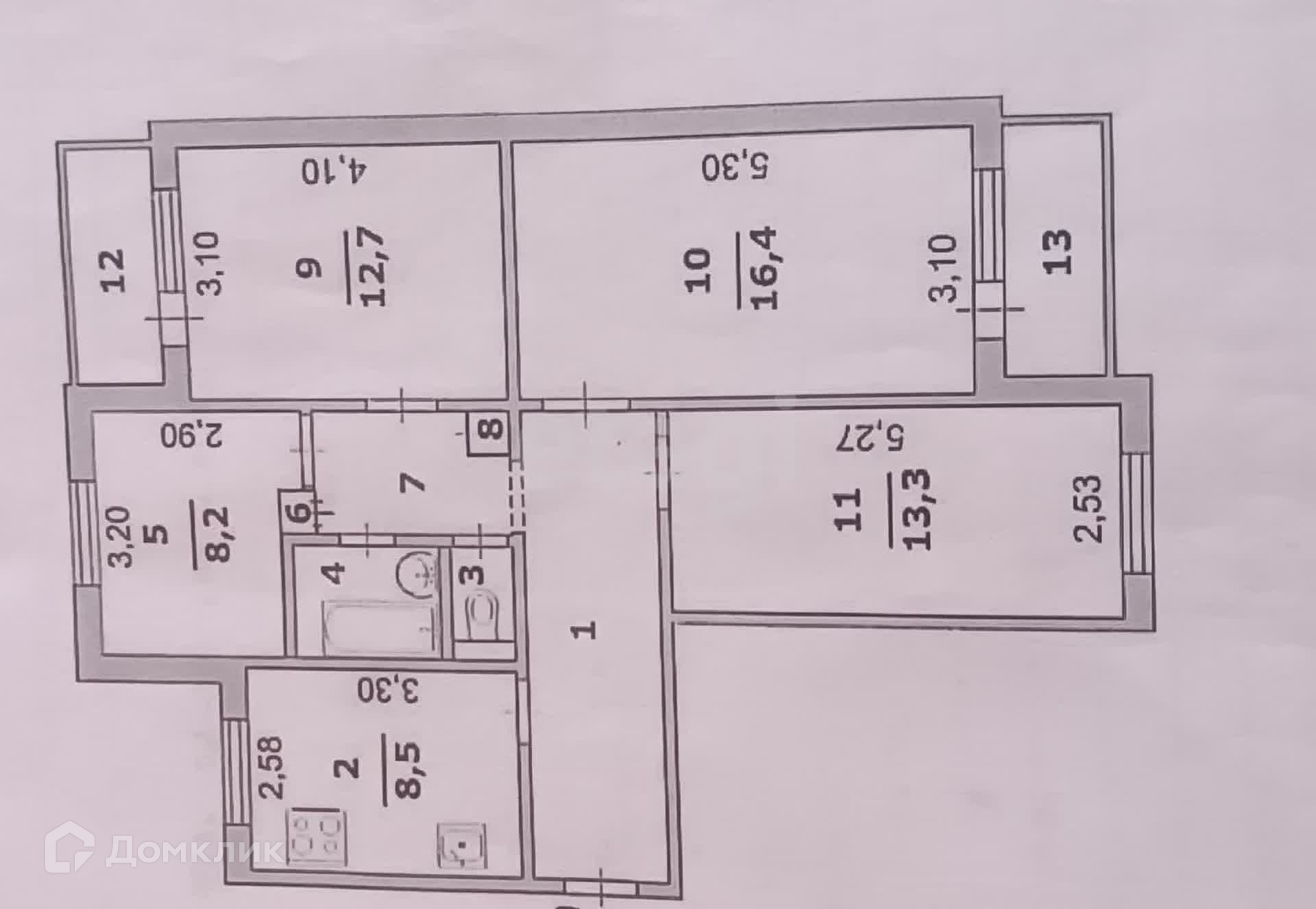 Жилая площадь более 50кв.м., все комнаты правильной формы.