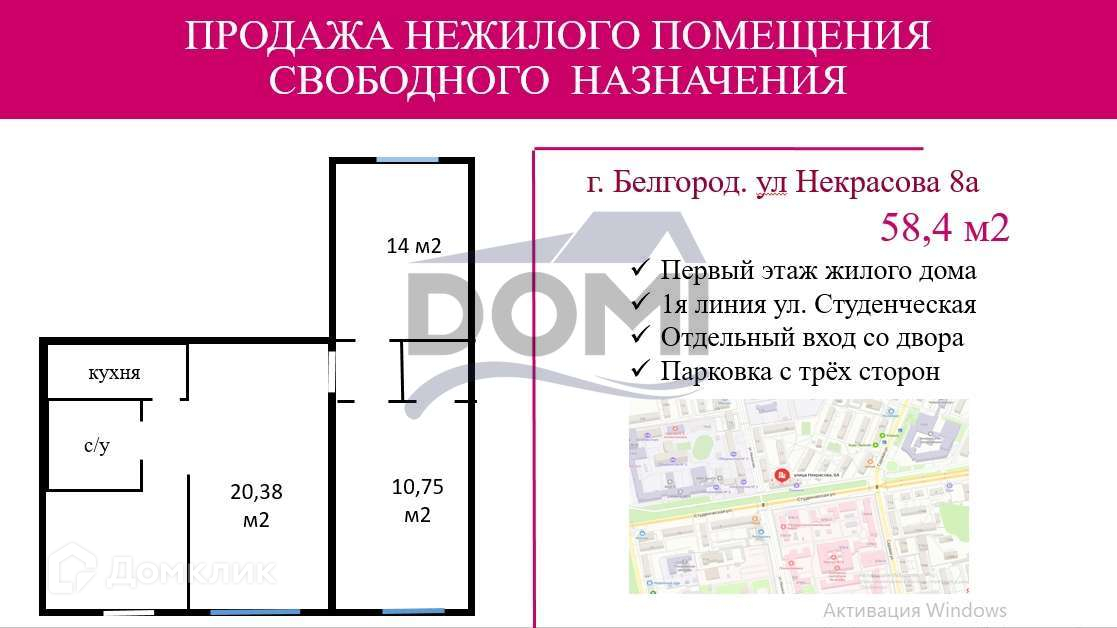 Офис, 58.4 м2, на продажу в Белгороде, улица Некрасова, 8А
