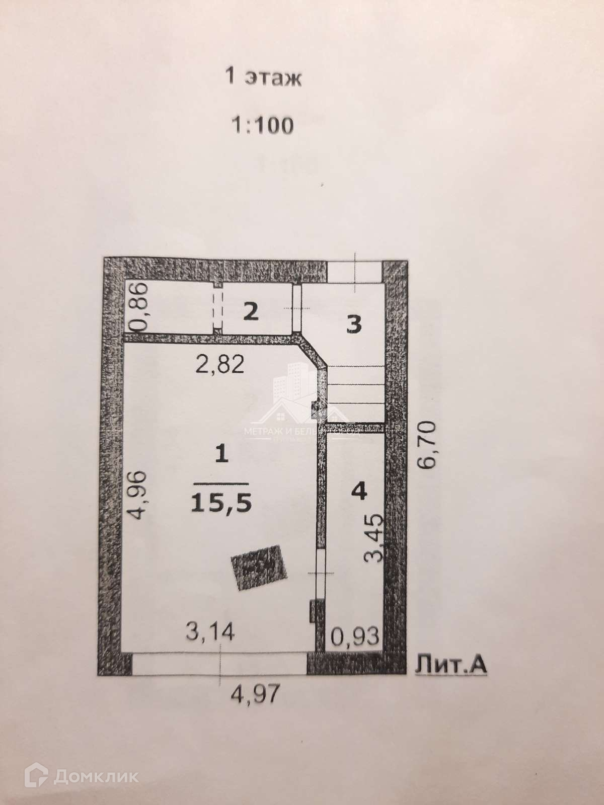 Площадью 15,5 м2 и подсобным помещением 1,6 м2, высота потолков 2,4 м. Ворота металлические распашные с дверью.