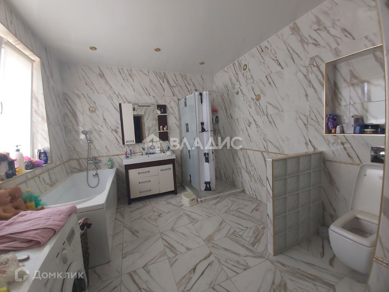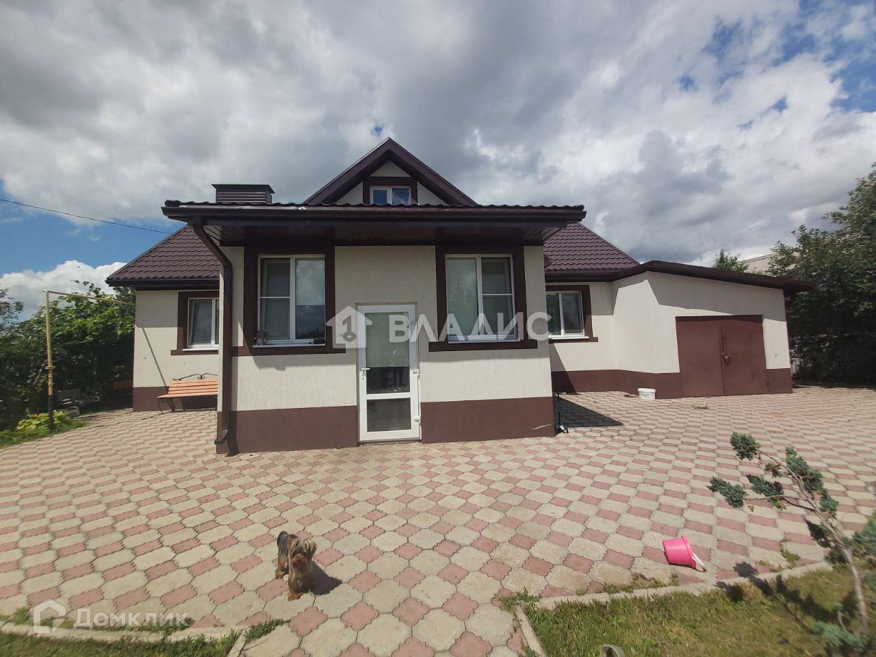 Дом построен из белого кирпича, облицован караедом. Все коммуникации центральные.