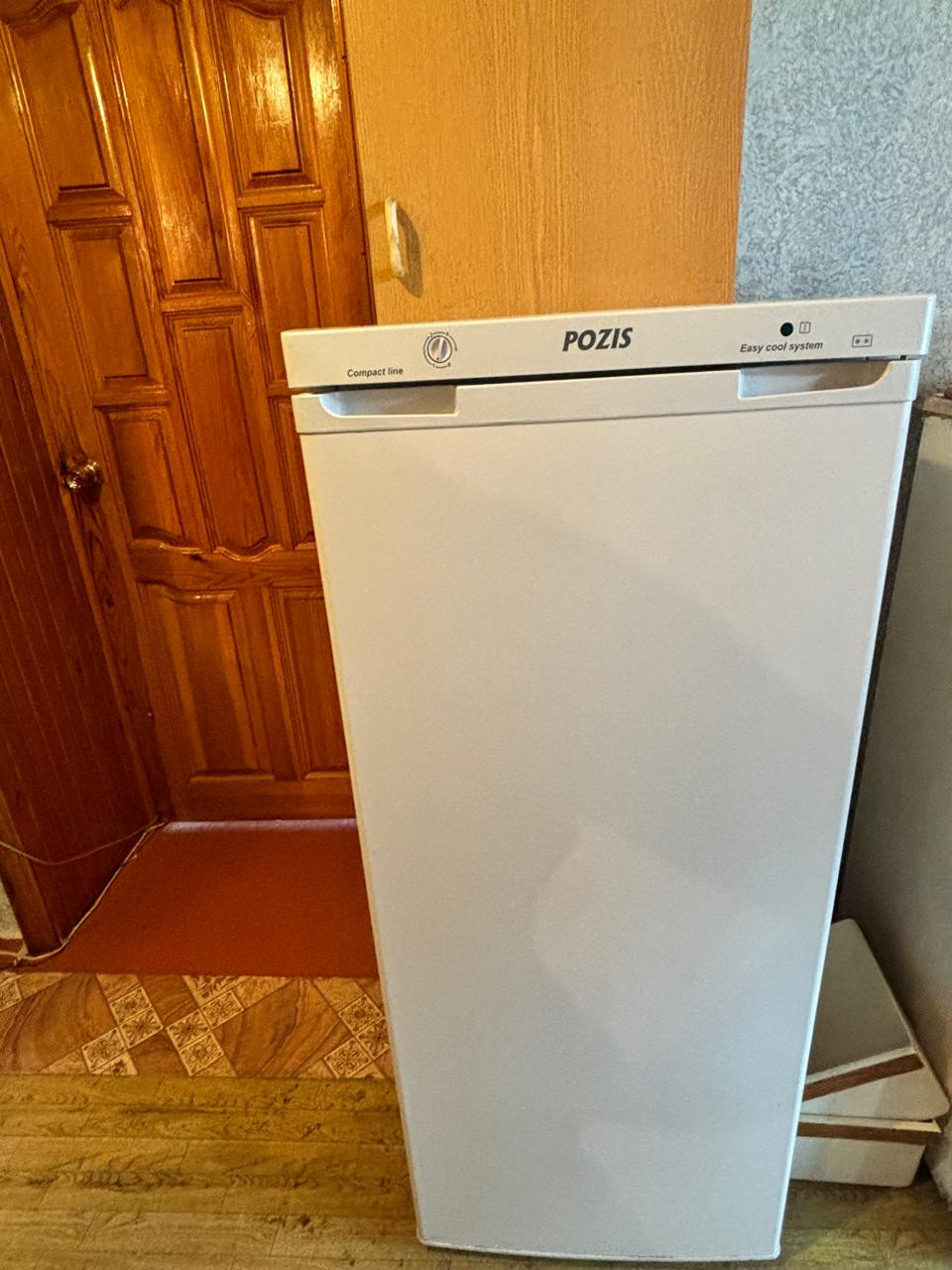 На кухне стоит холодильник.