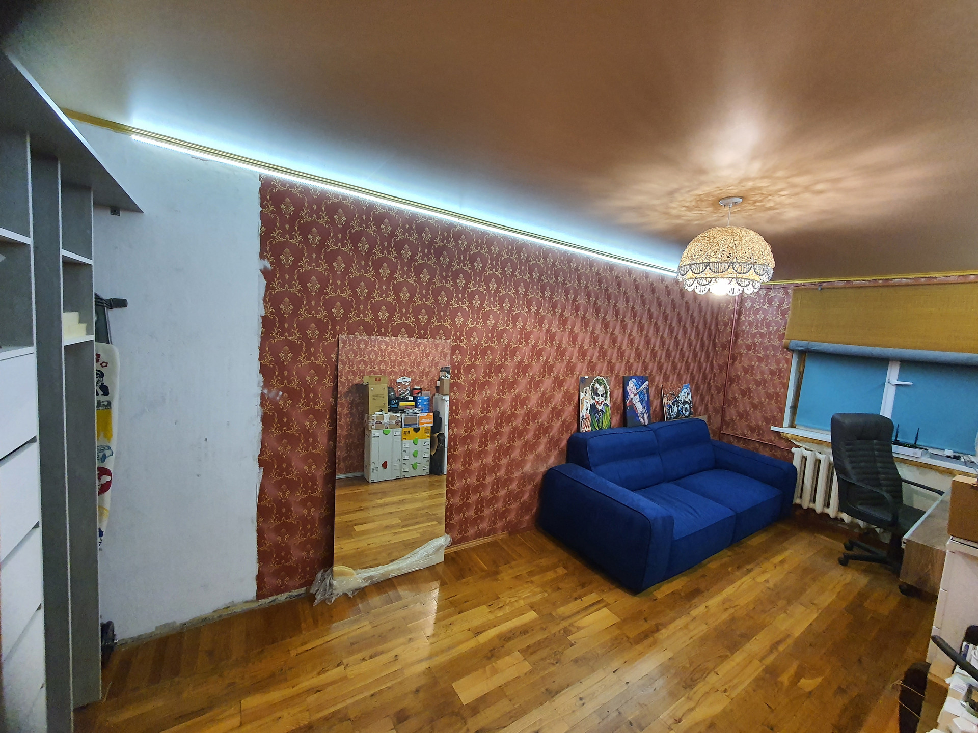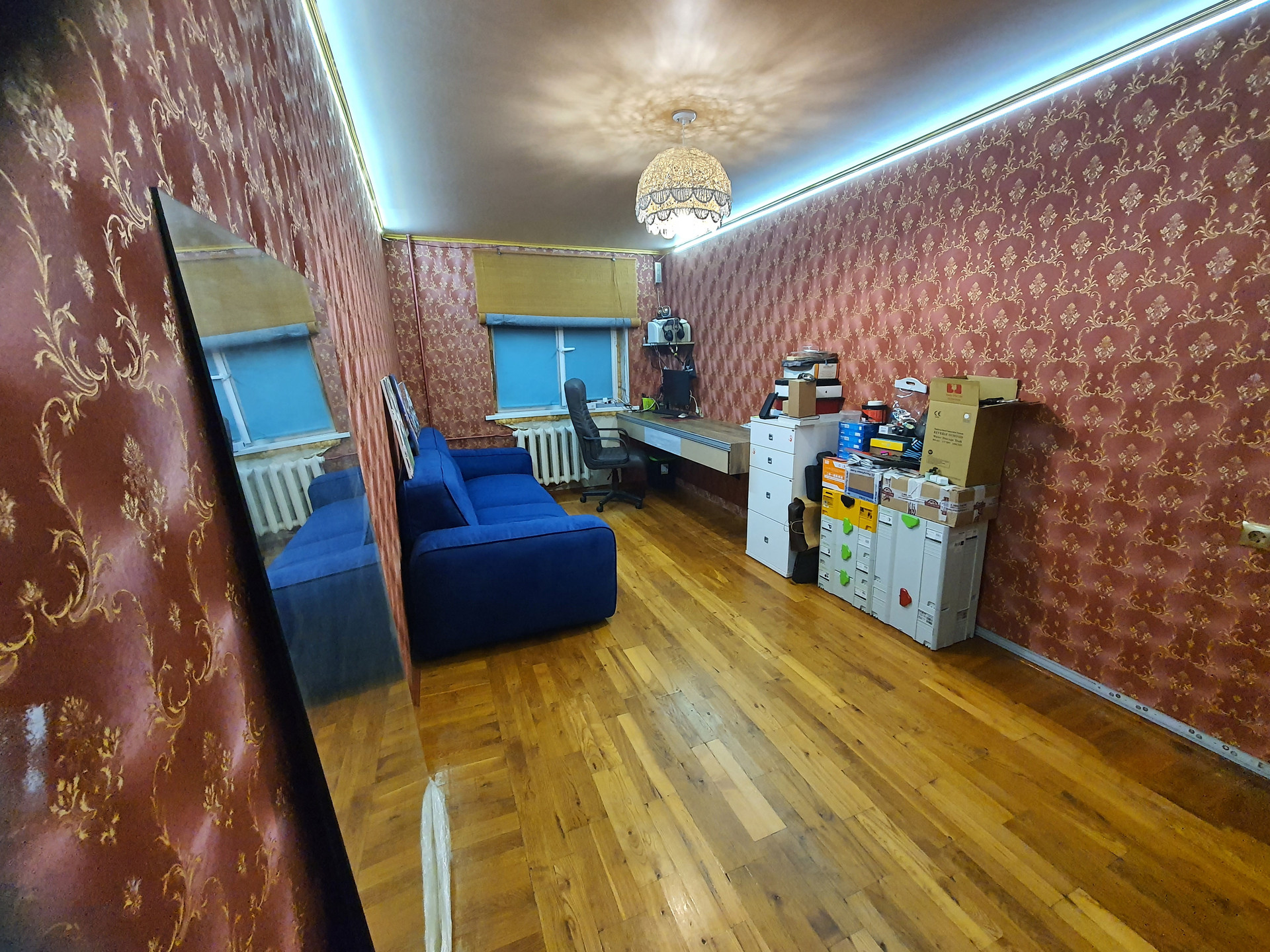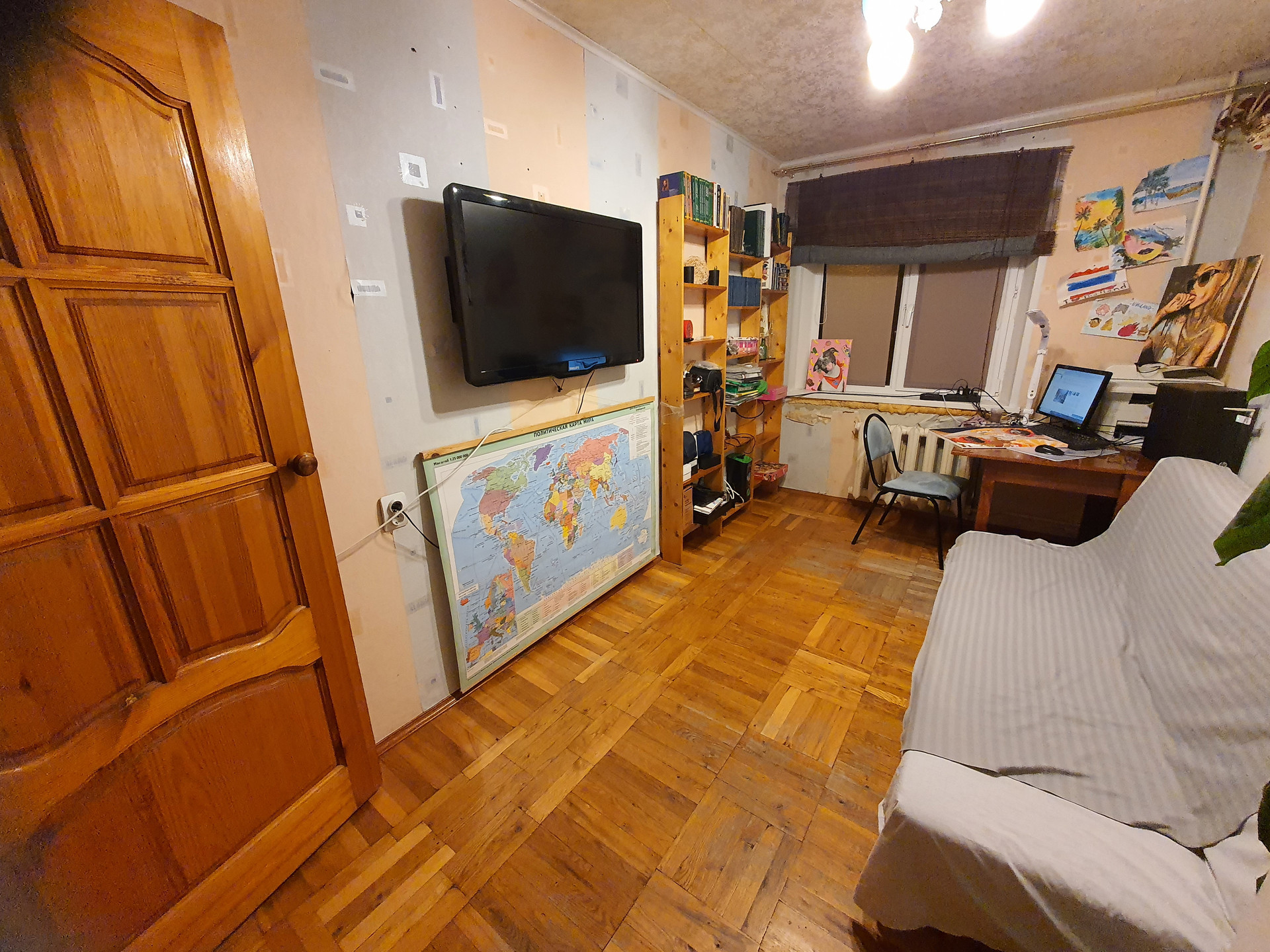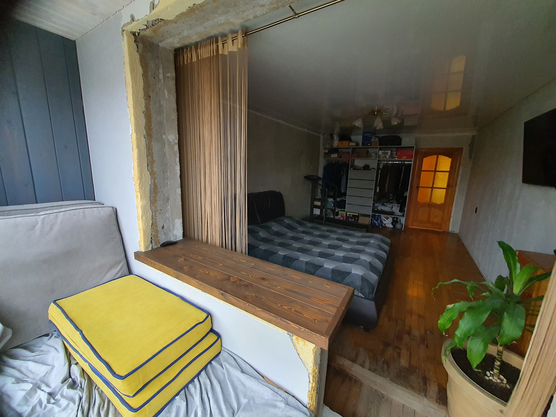 В квартире начат ремонт, но не доделан. Есть балкон (выходящий во двор, запад) и лоджия застекленная в пол (восток).