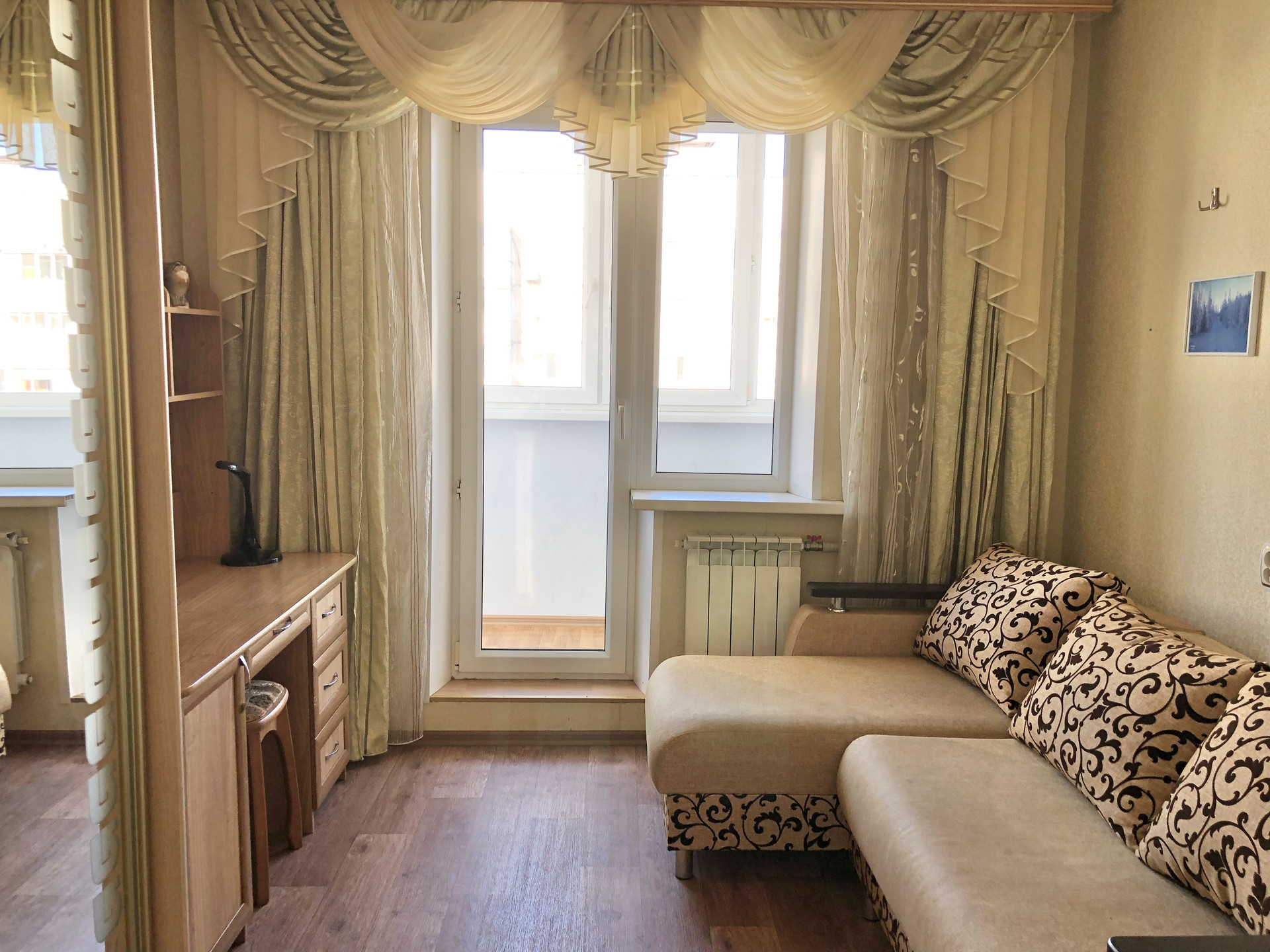 ✔️ Просторная гостиная с выходом на балкон.