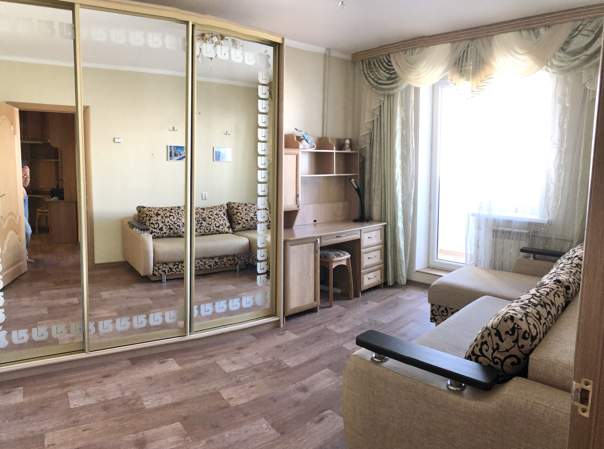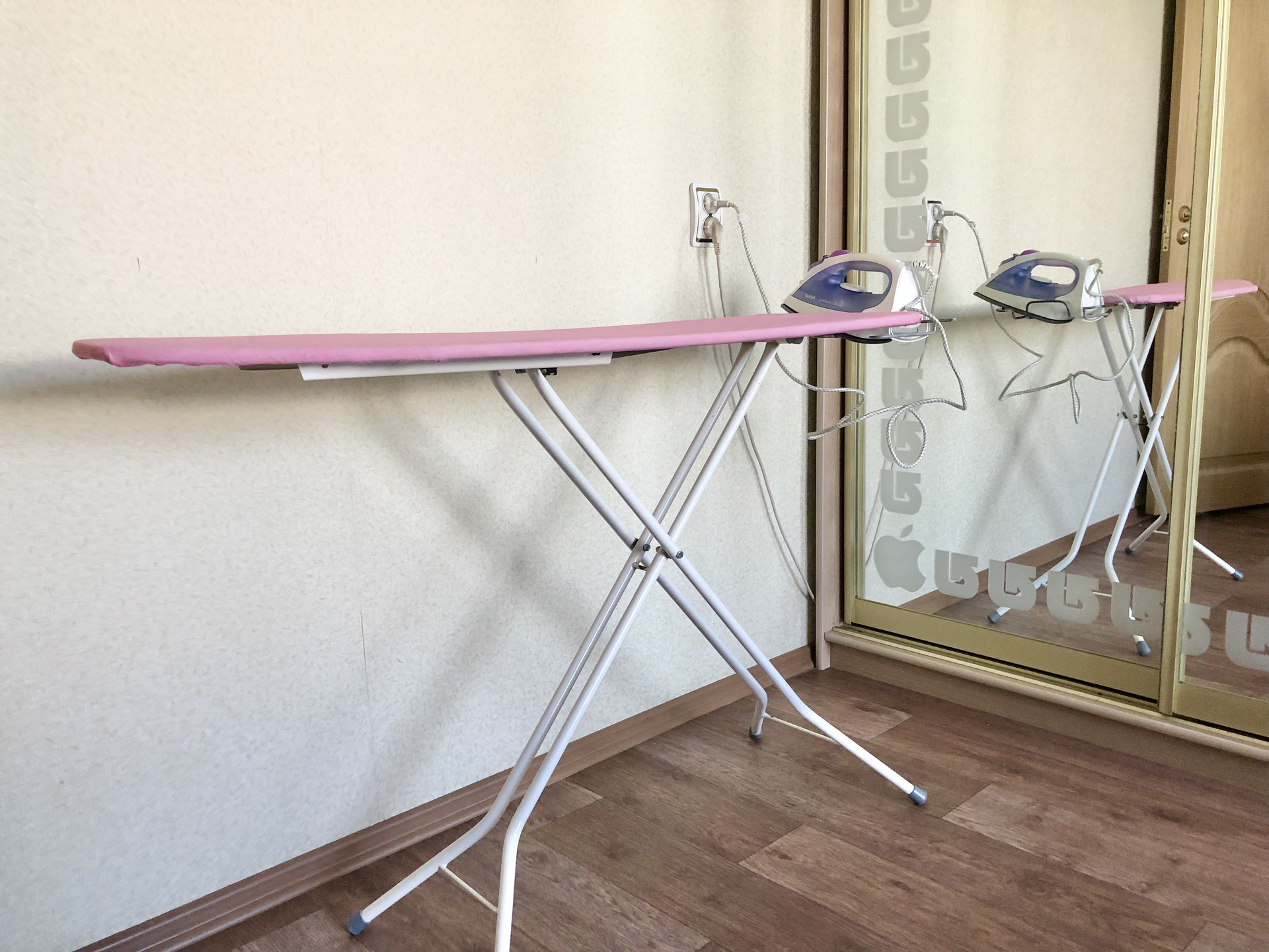Просторный диван-кровать. Рабочее место позволит с комфортом позаниматься рабочими задачами, Гладильная доска с утюгом.