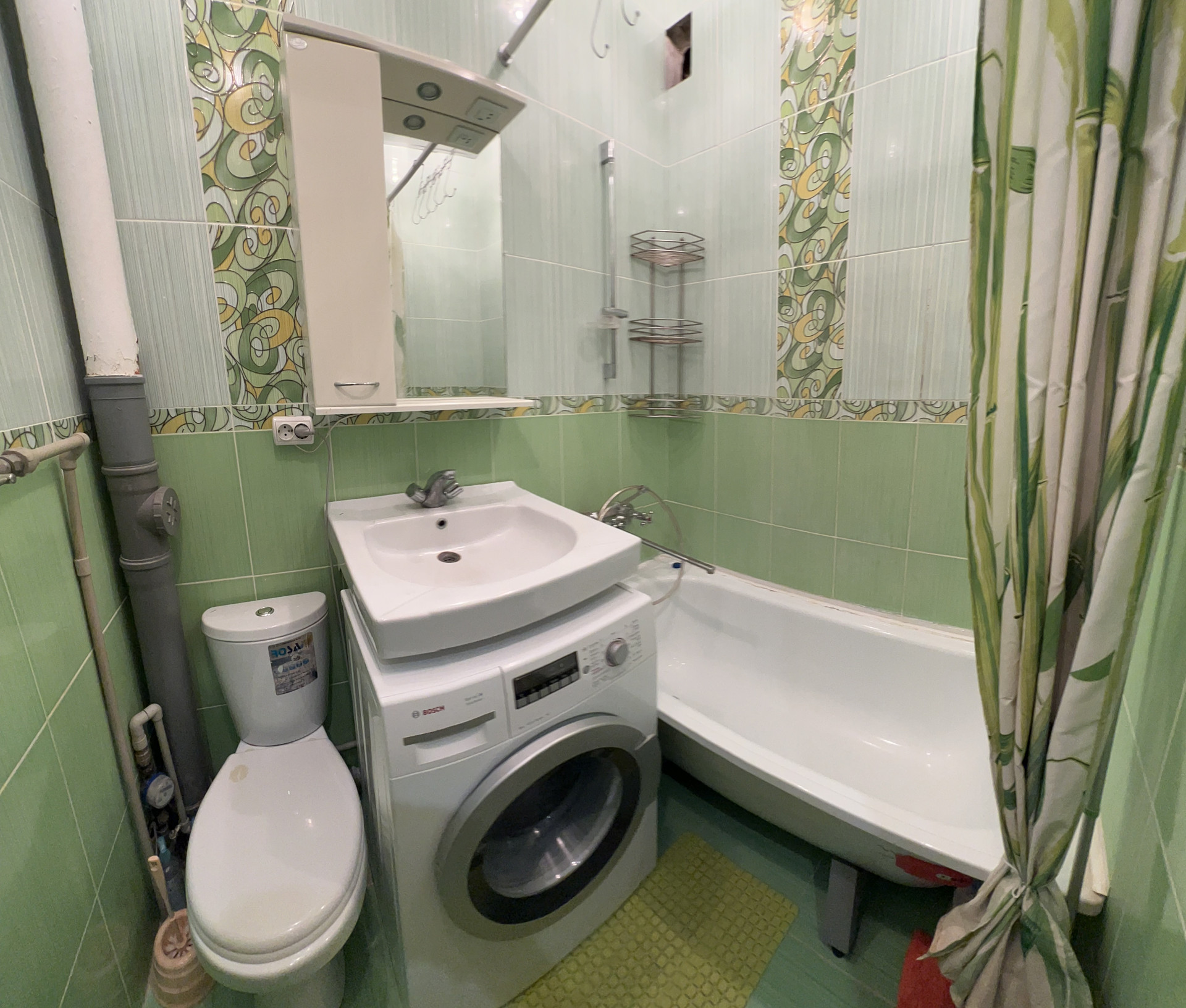 В санузле новая сантехника, стиральная машина.