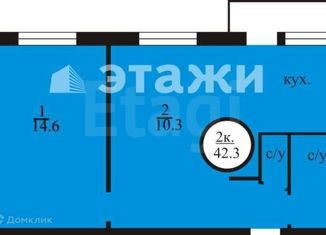 Продаю 2-комнатную квартиру, 44.3 м2, Комсомольская улица