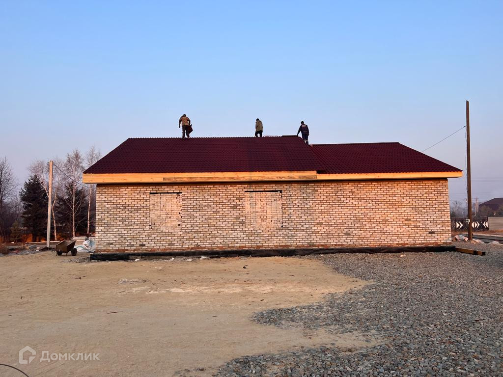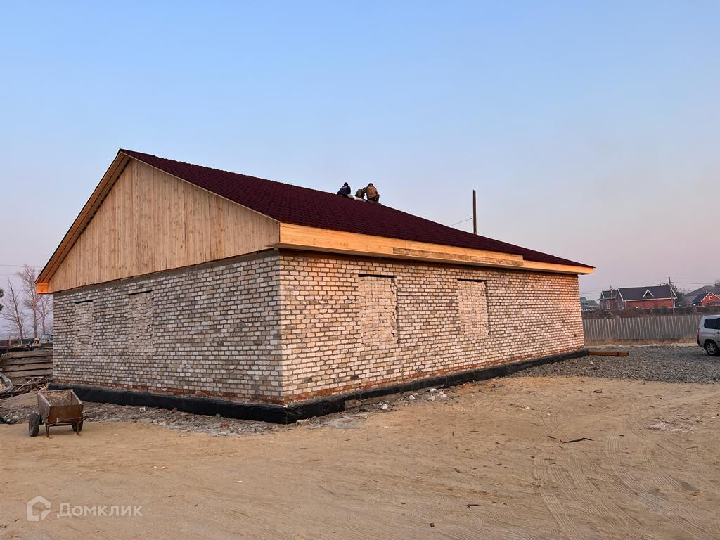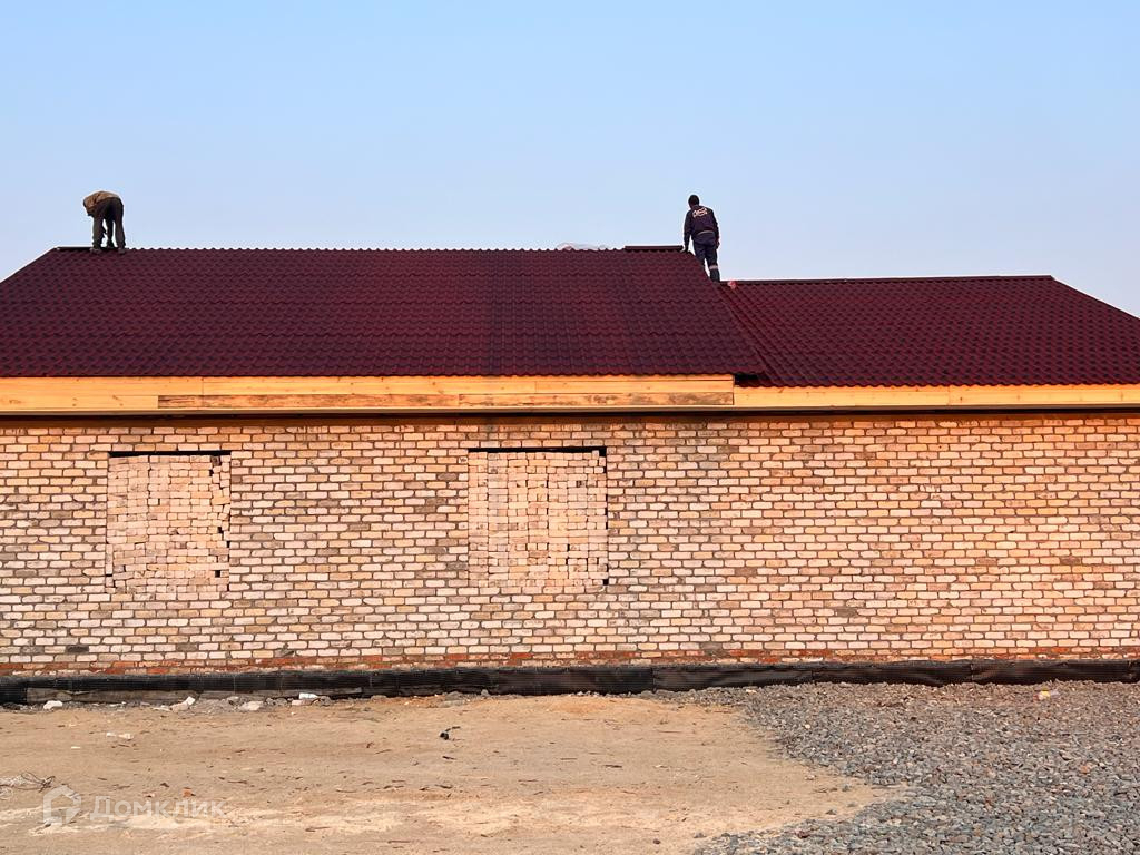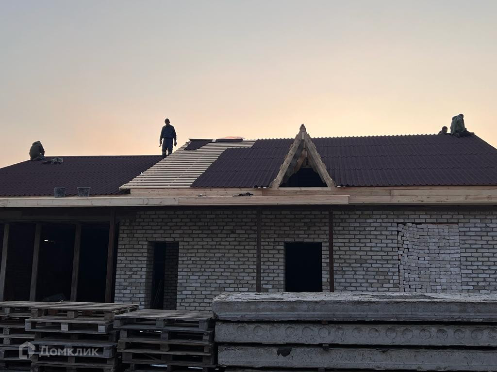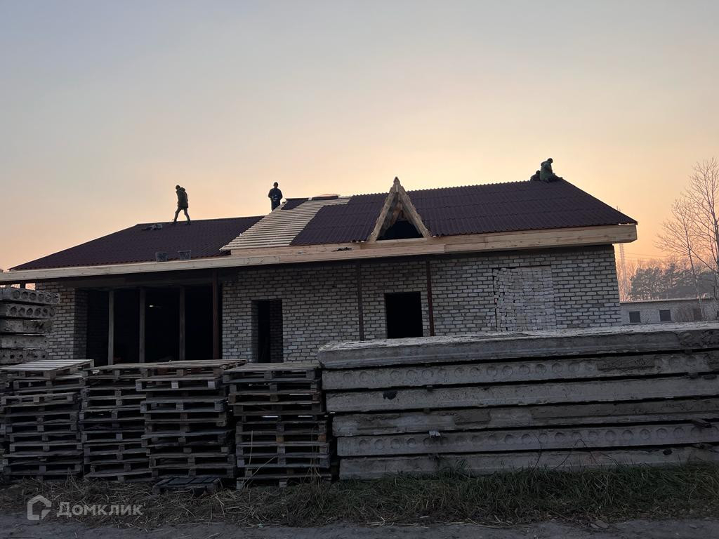 Продается кирпичный дом 2022г постройки, площадью 220м, на 10 сотках земельного участка!  —Залит фундамент (цельная плита).  —Внутри выставлены стены.  —Гараж встроен в дом.  —Есть возможность разместить баню.  —Три жилые комнаты.  —Крыша из металлосайдинга, утеплена.   Отлично подойдет для большой семьи.  Участок находится на коттеджной улице с хорошим освещением!