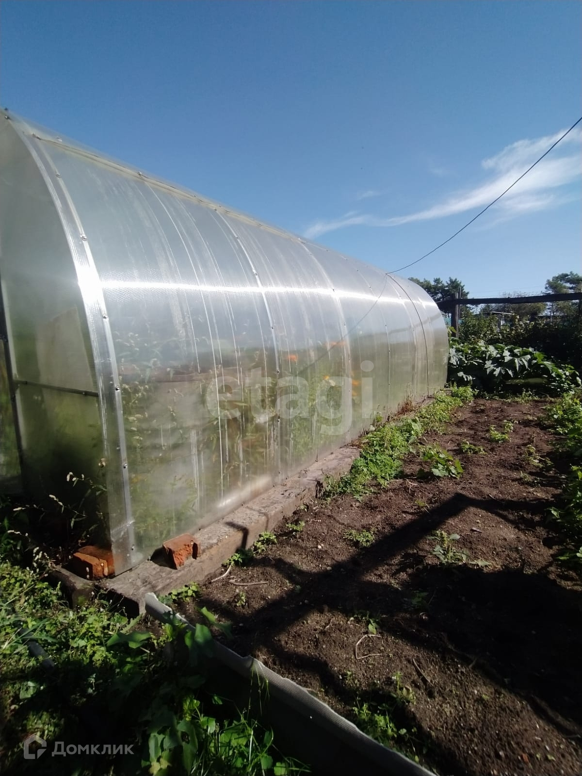 Все расположено на участке 8,7 соток. Теплица, плодово-ягодные насаждения.