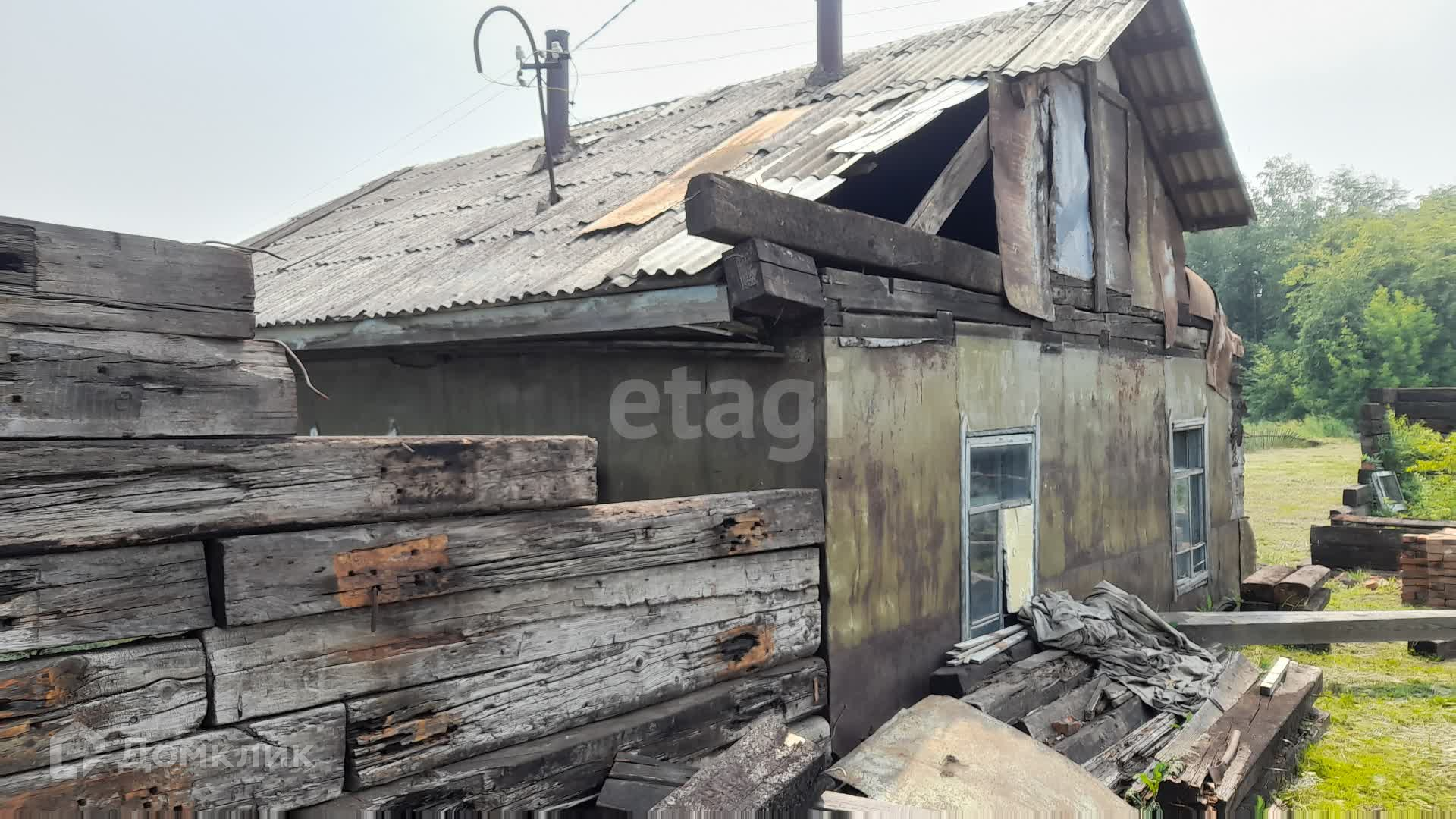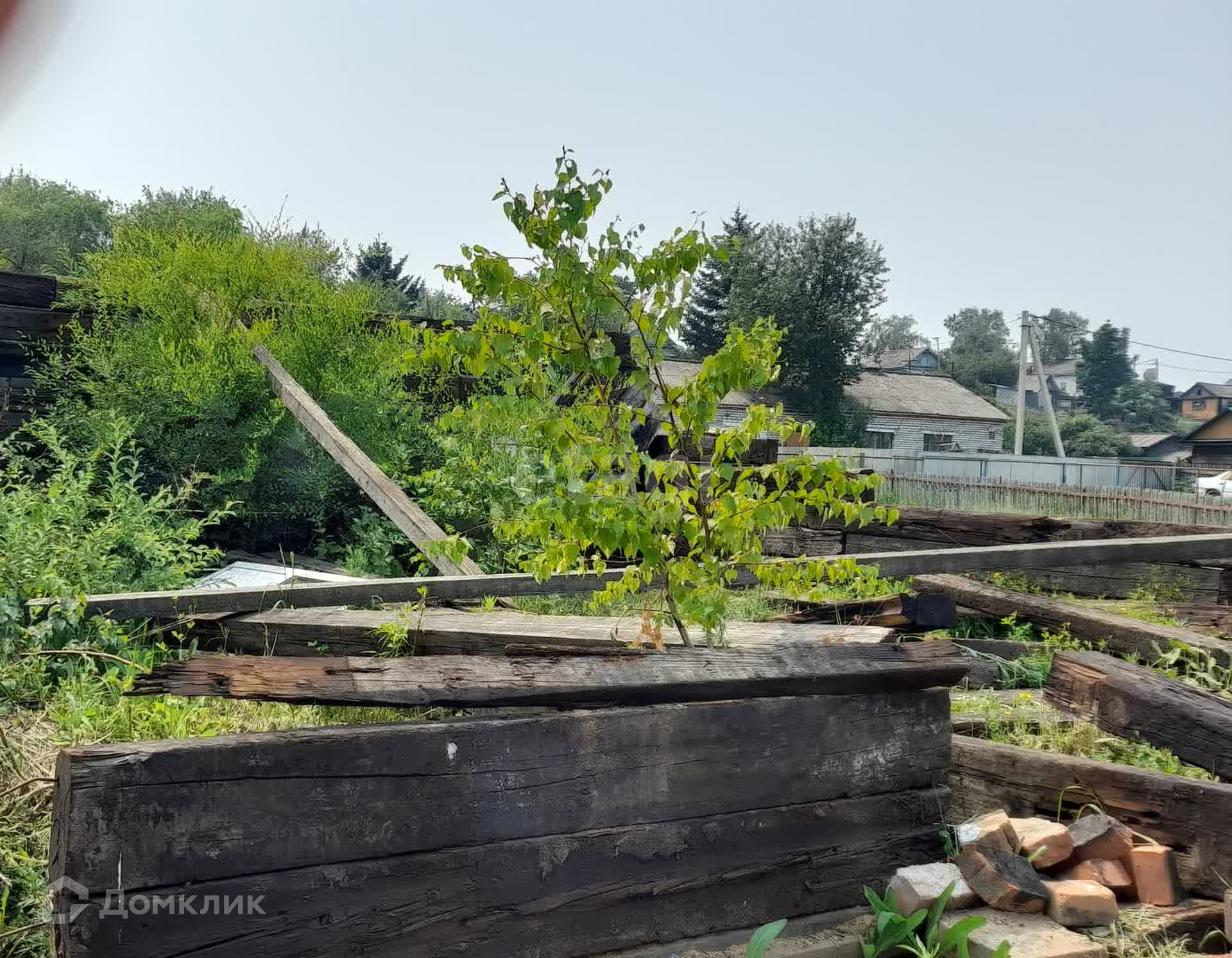 На территории земельного участка имеется не полностью разобранный гараж из шпалы.