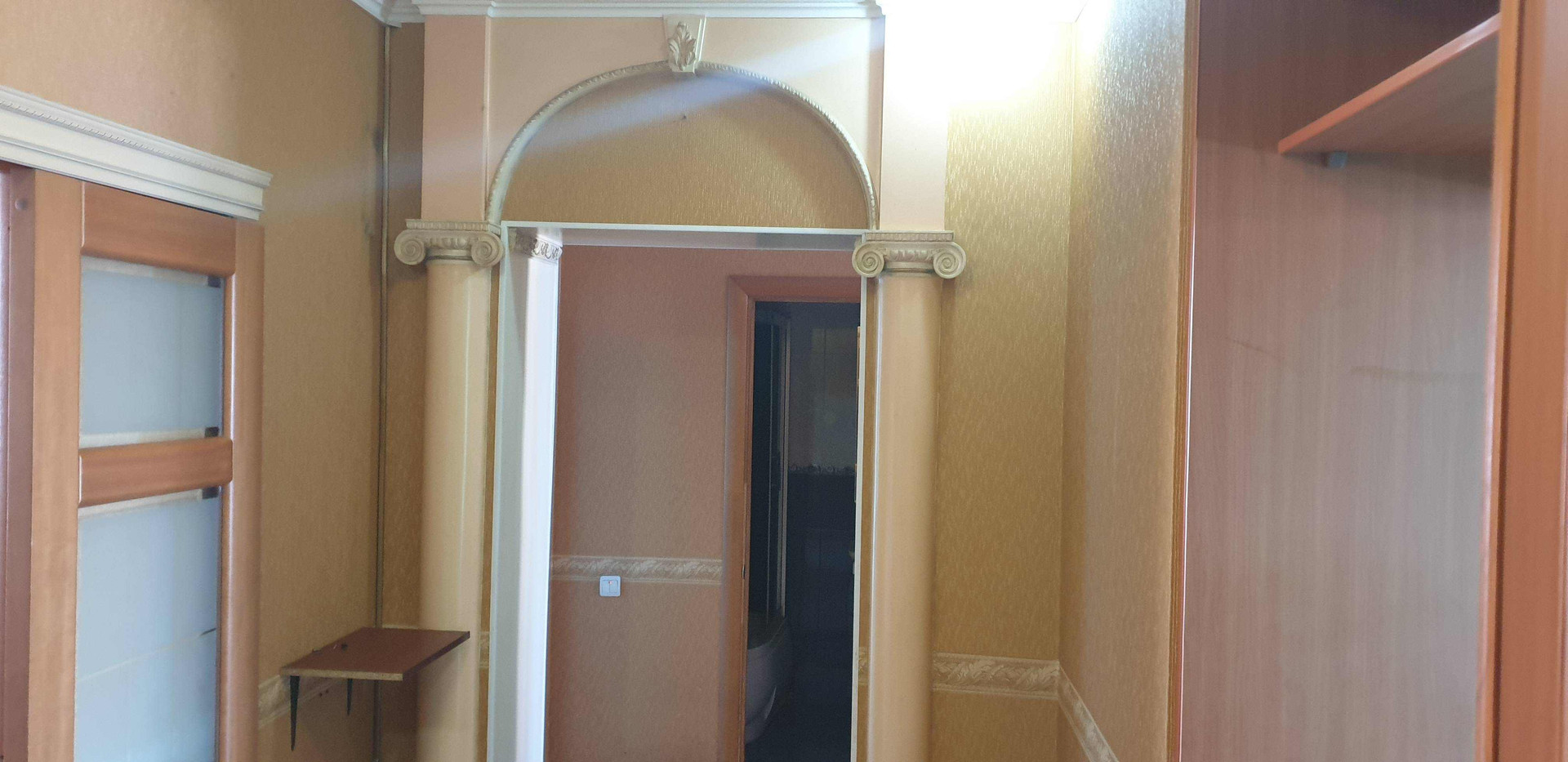 В прихожей встроен вместительный шкаф-купе.