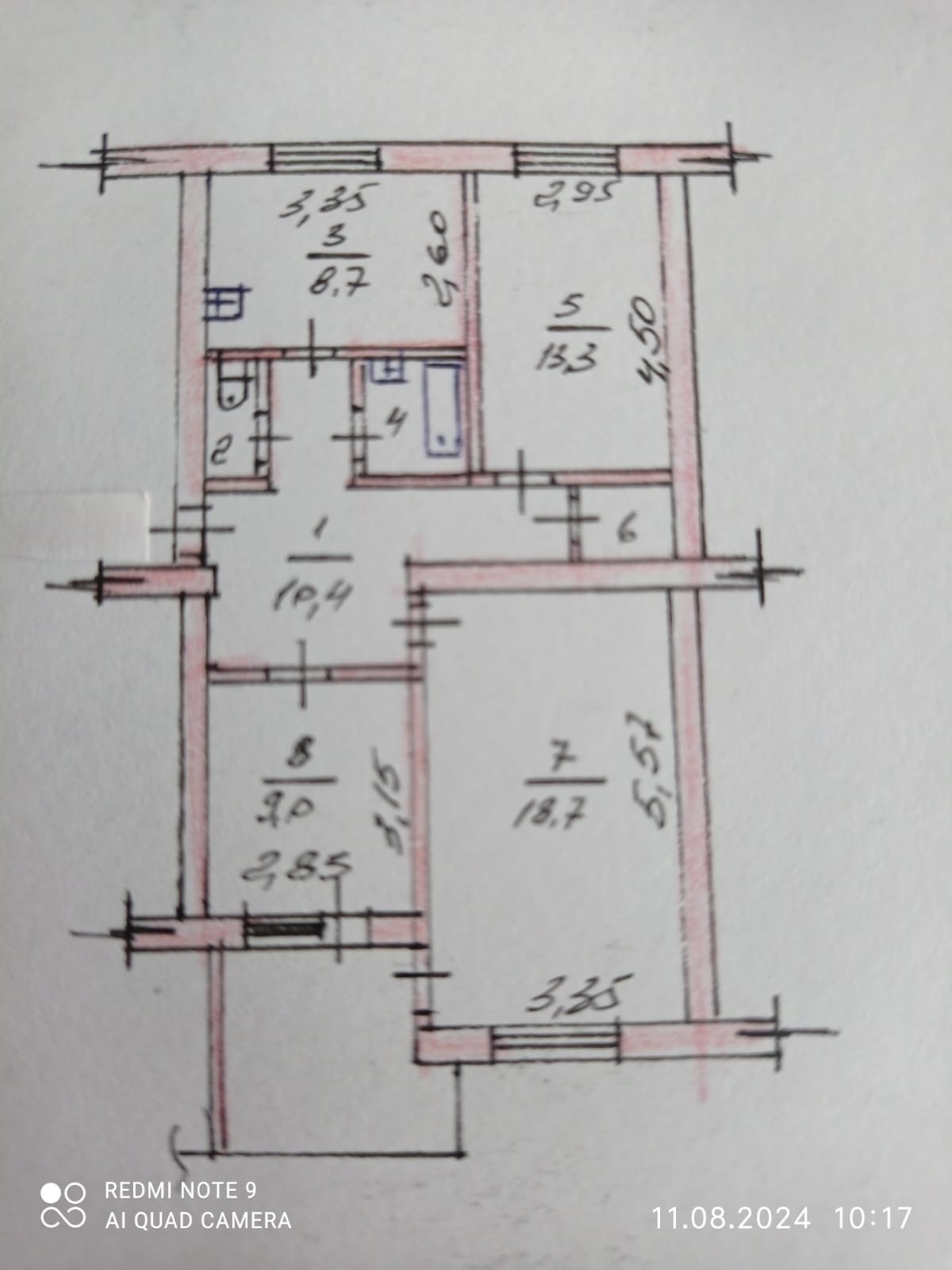 Площадь кухни 8.7 м2