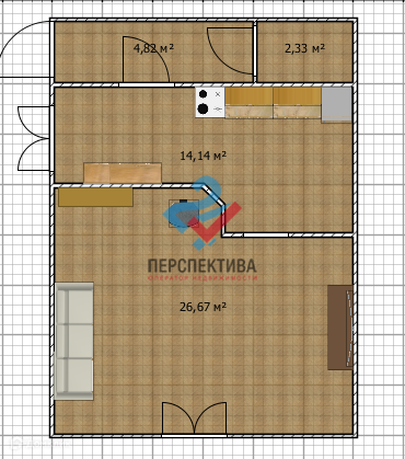 Жилая площадь 40.3 м2