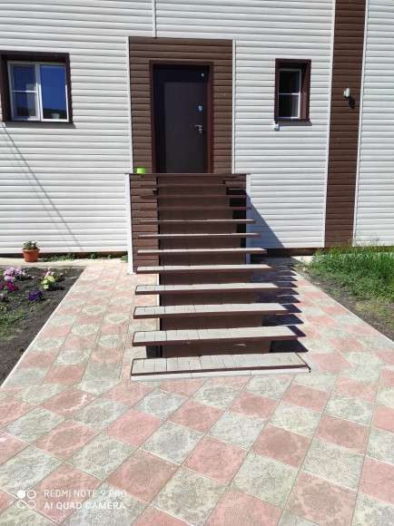 Территория перед домом, подъезд в гараж выложен тротуарной плиткой.