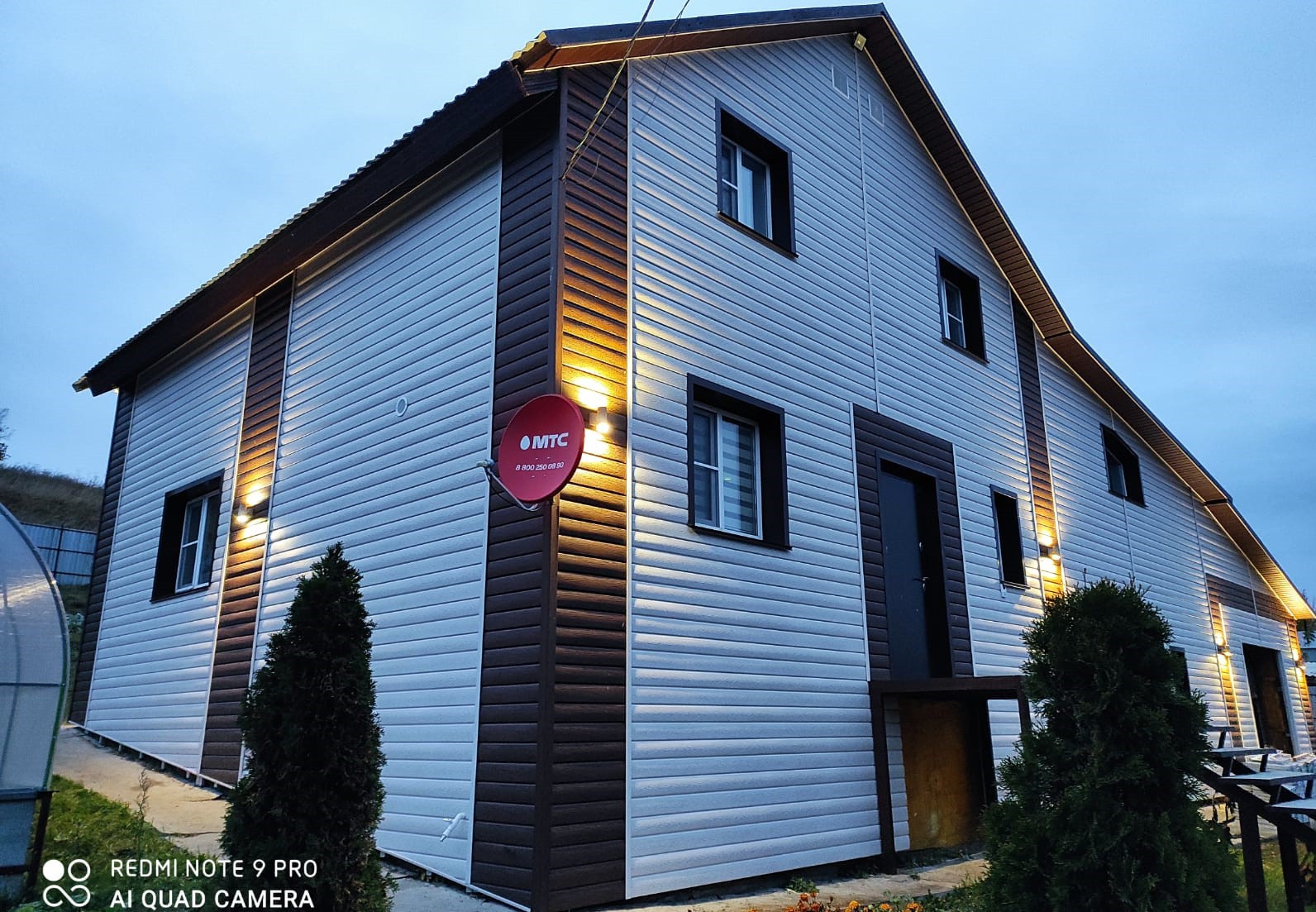 Видеонаблюдение и освещение (автоматическое) по периметру дома, спутниковое ТВ от МТС, высокоскоростной кабельный интернет. Забор по периметру из профлиста с автоматическими воротами.