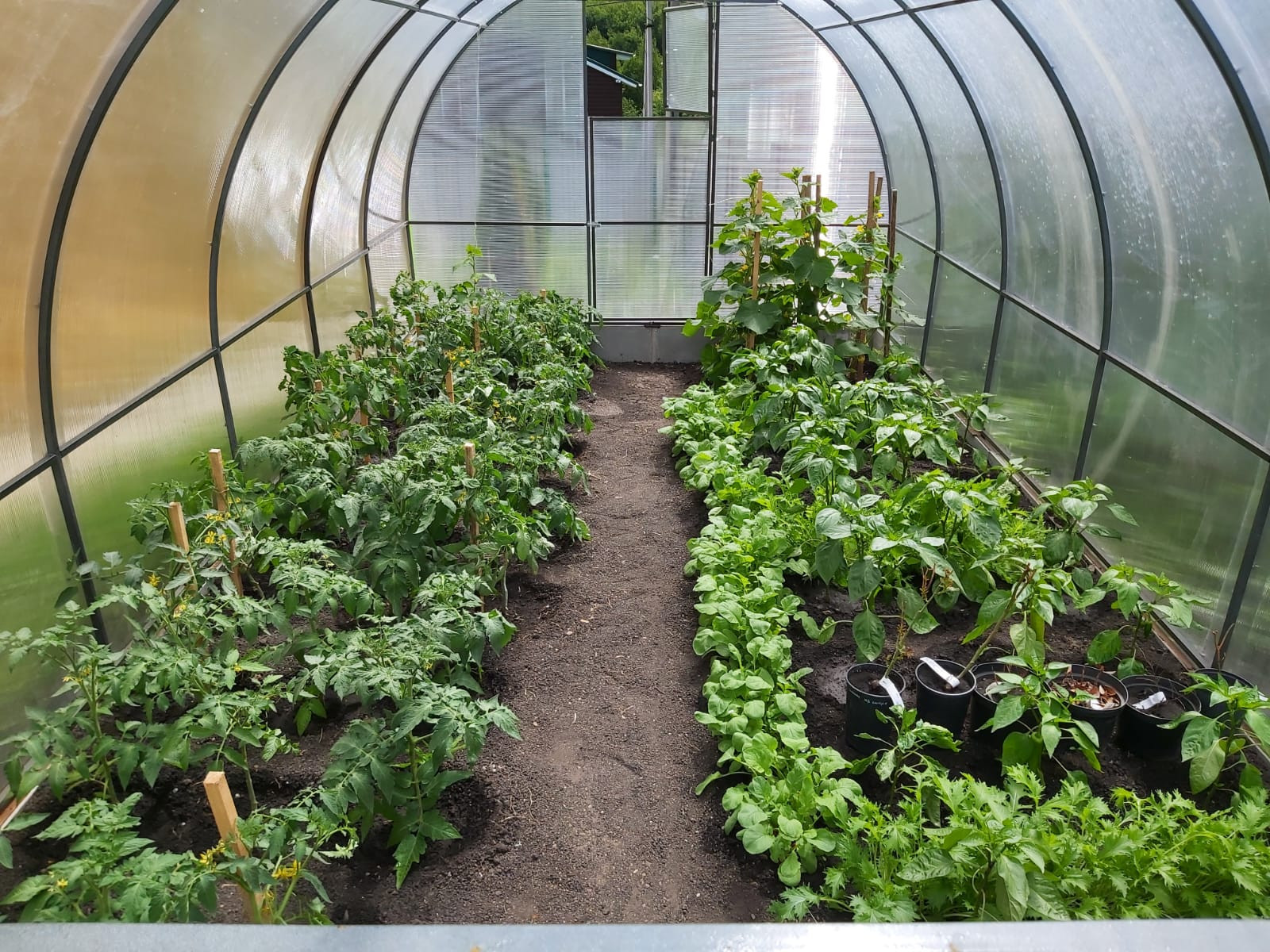 На участке большое количество молодых (плодово-ягодных деревьев, орехи, ягодные кустарники, цветы), летний водопровод по всему участку для полива, теплица 3*6 на капитальном фундаменте.