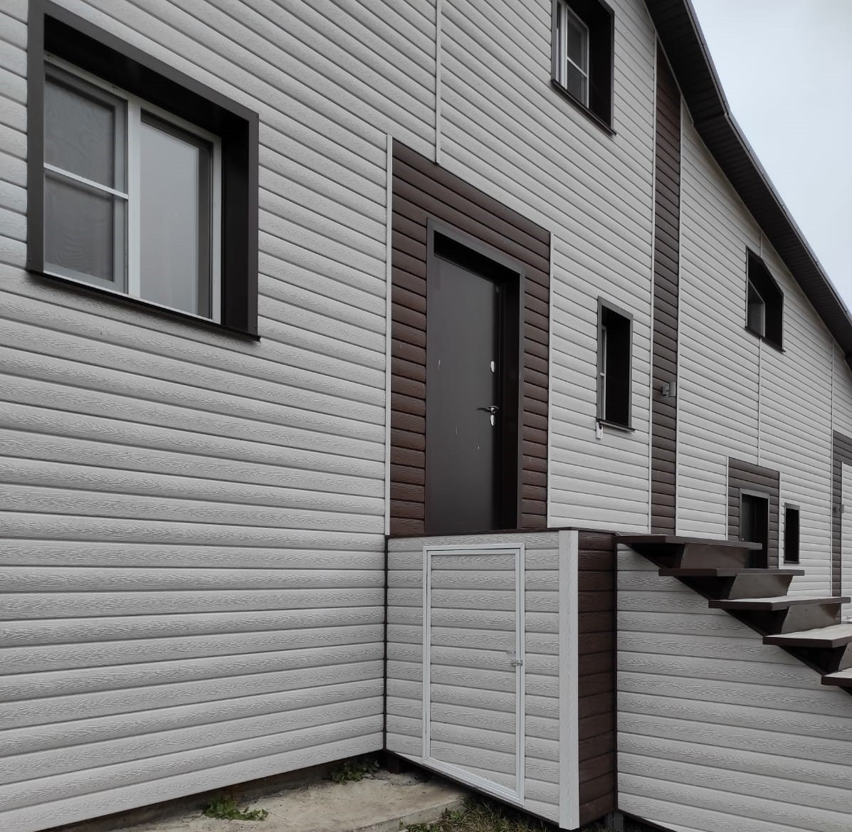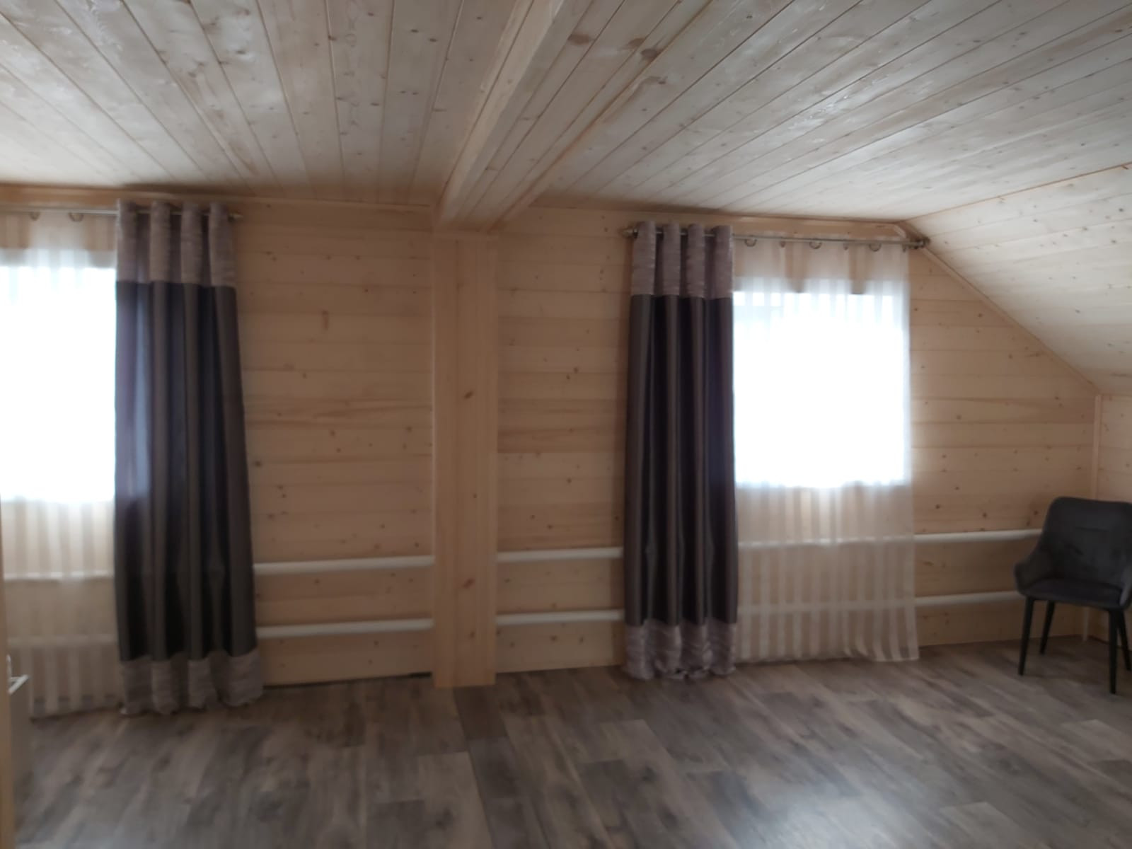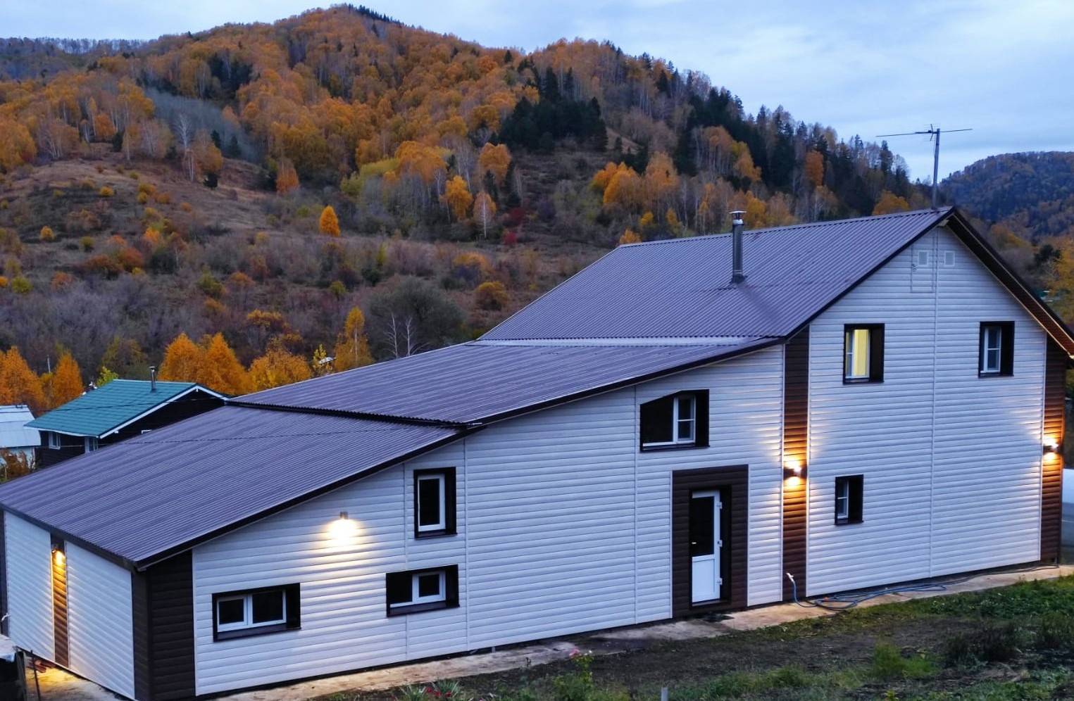 Материал стен – пенополистирол бетон и брус (отлично держит тепло), отделка снаружи - высококачественный сайдинг (гарантия 30 лет). Крыша – крашенный профлист, внутренняя экологически чистая отделка – евровагонка из массива сосны и пихты.
