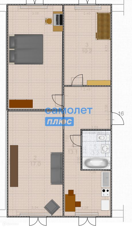 Жилая площадь 55.6 м2