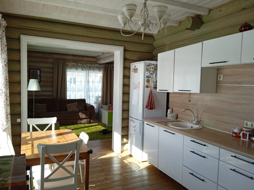 Продается дом из оцинкованного бревна для круглогодичного проживания S -125м2 на участке 5 соток в г.Белоозерский на ул Тихая 88
