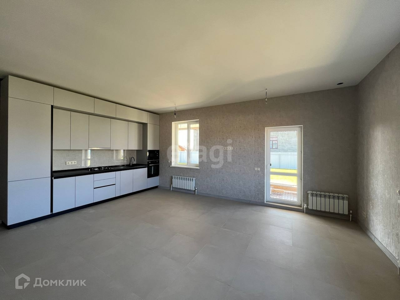 Далее: просторная кухня гостиная, с выходом на задний двор (террасу), встроенная кухня и фирменная техника