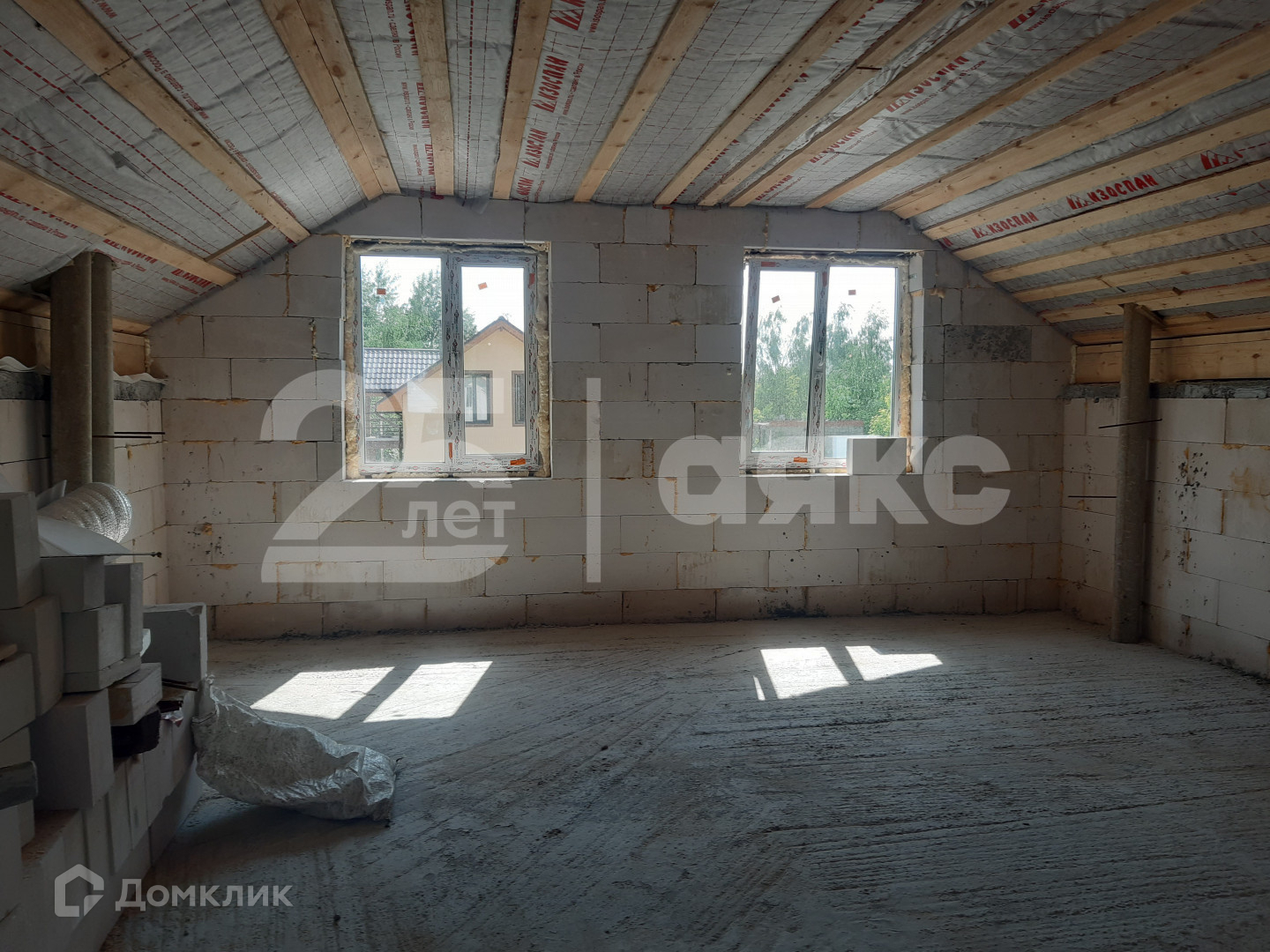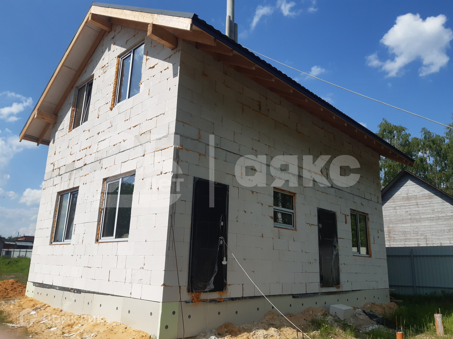 Фундамент- плита , утеплитель пеноплекс , гидроотсечка , гидроизол и сверху пенополистерол. Стены блок газосиликат, крыша утеплена покрытие крыши металлочерепица, высота потолка 3 метра , окна ПВХ 1.5 на 1.4. Газ по границе участка, водоснабжение центральное (колодец) , выводы под электричество и канализацию есть.