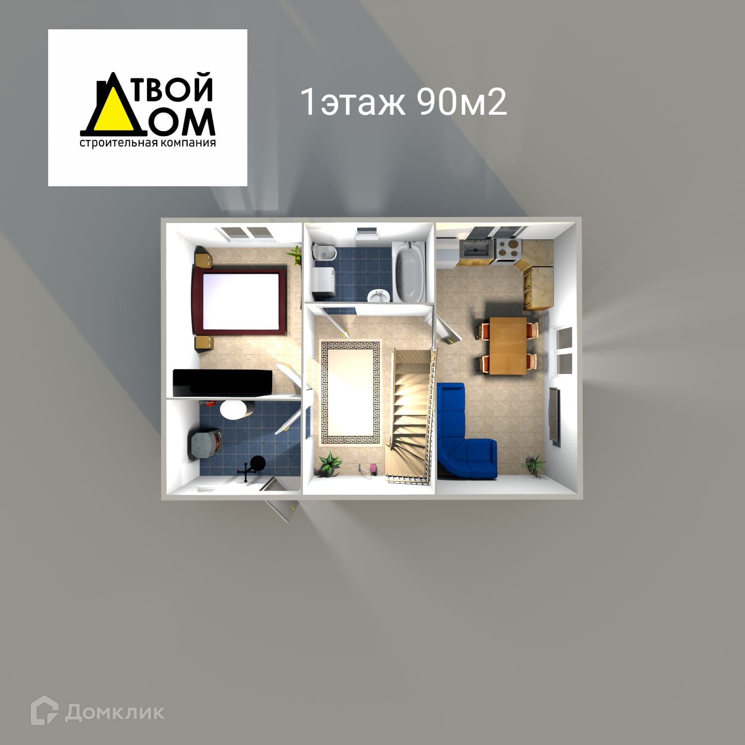 - 1-й этаж: , котельная, холл , кухня-гостиная ,1 комната , санузел (душевая, раковина, унитаз), выводы под стиральную машину