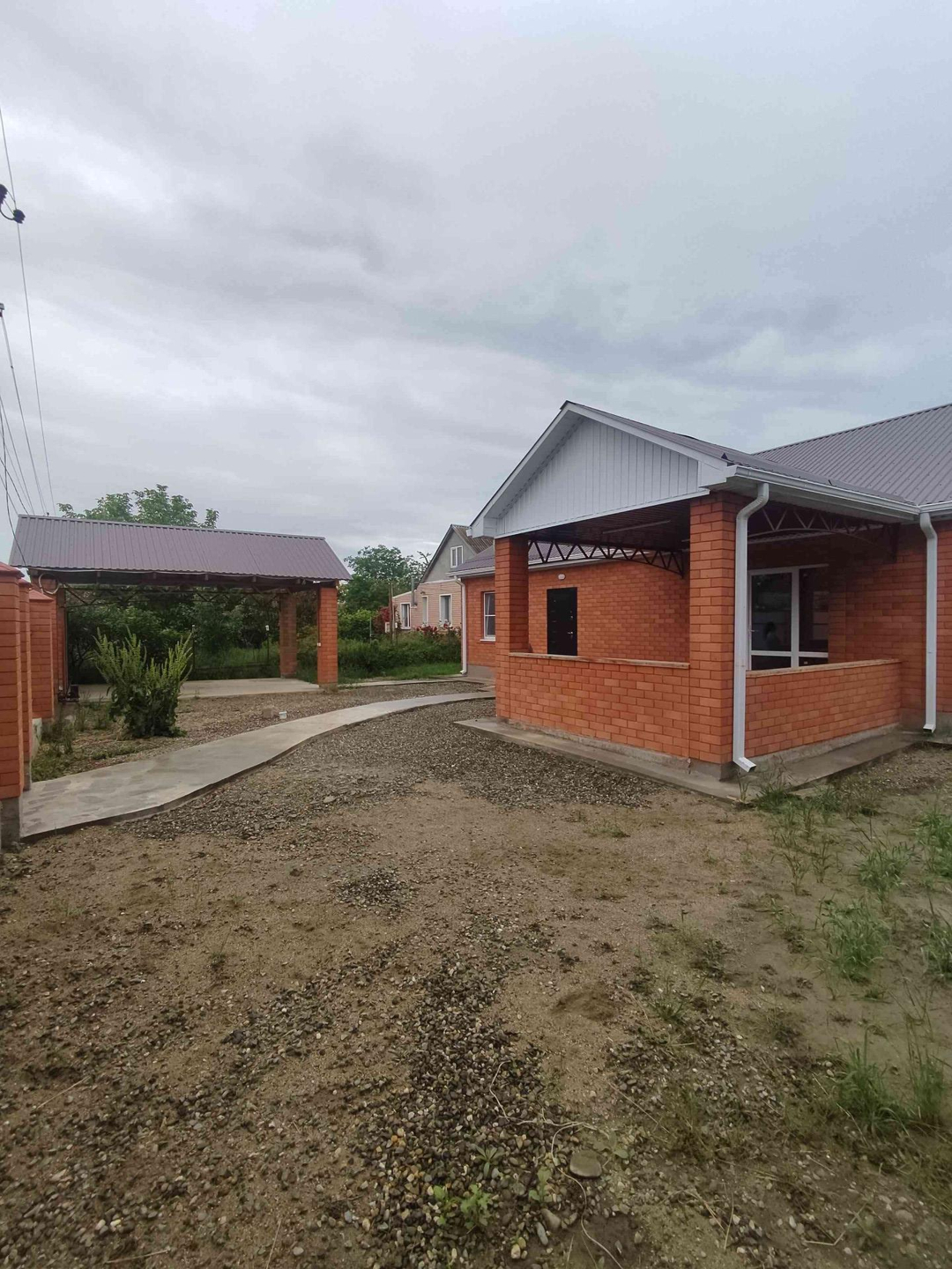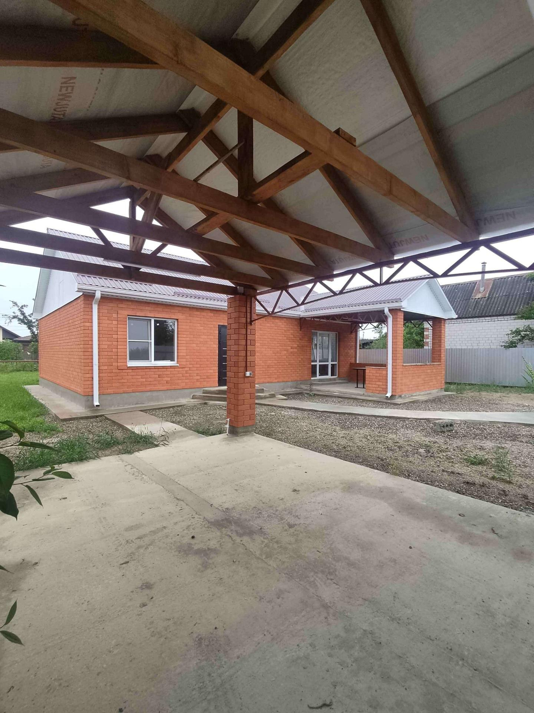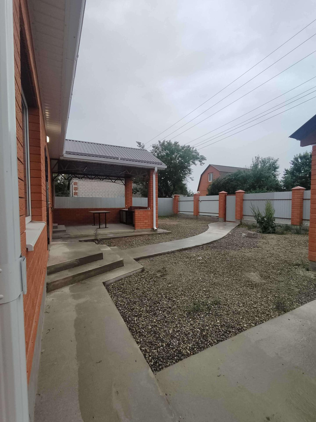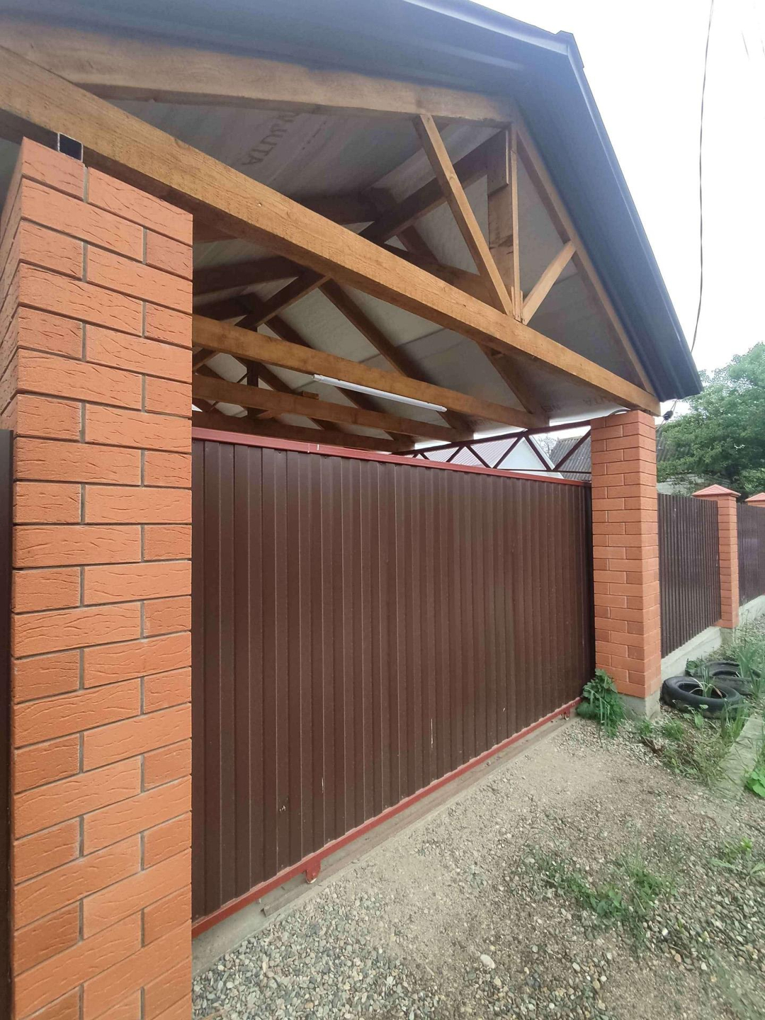 Участок полностью огорожен, заезд с навесом для автомобиля.