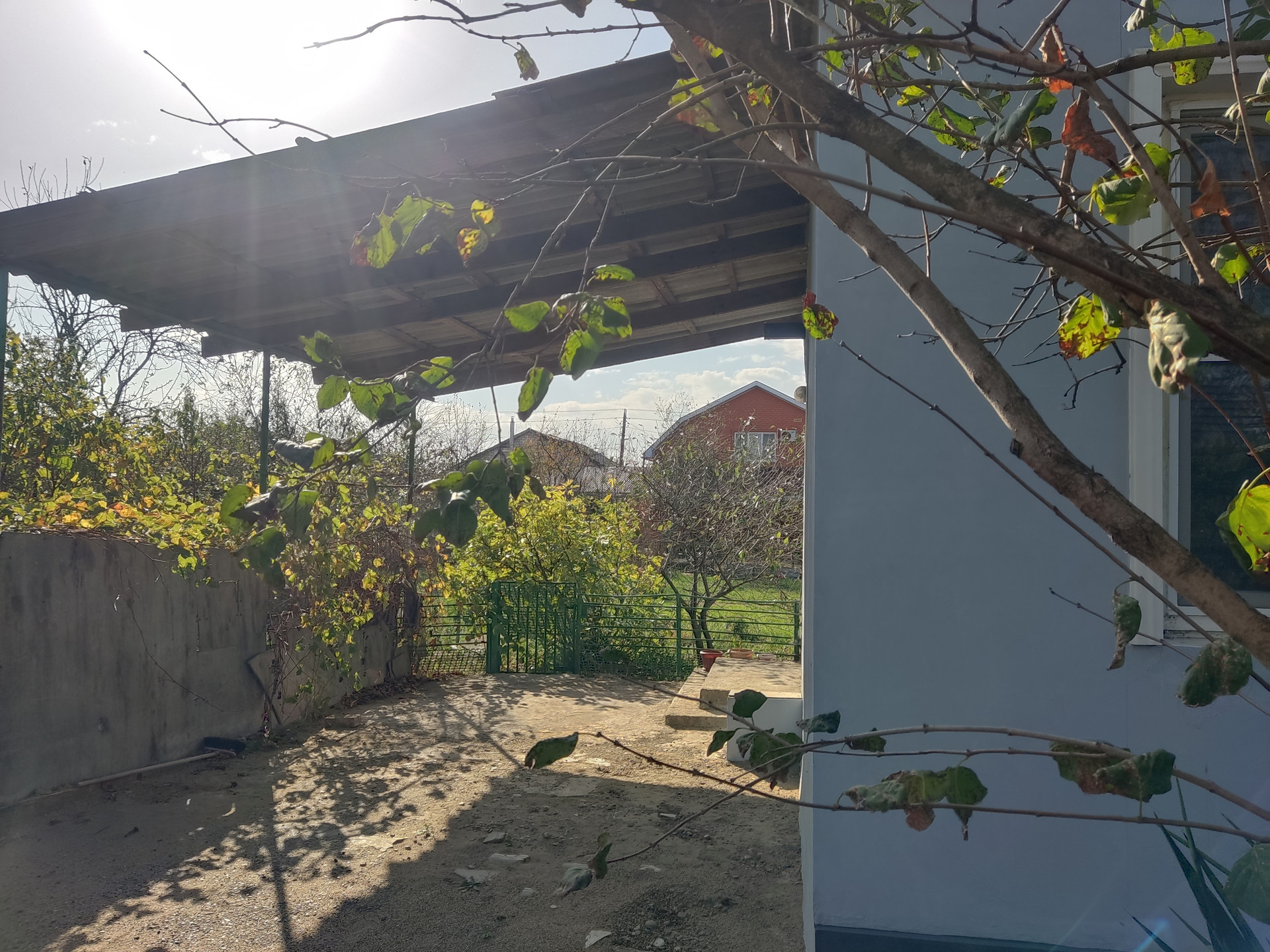 Навес. Двор бетон. Огорожен.