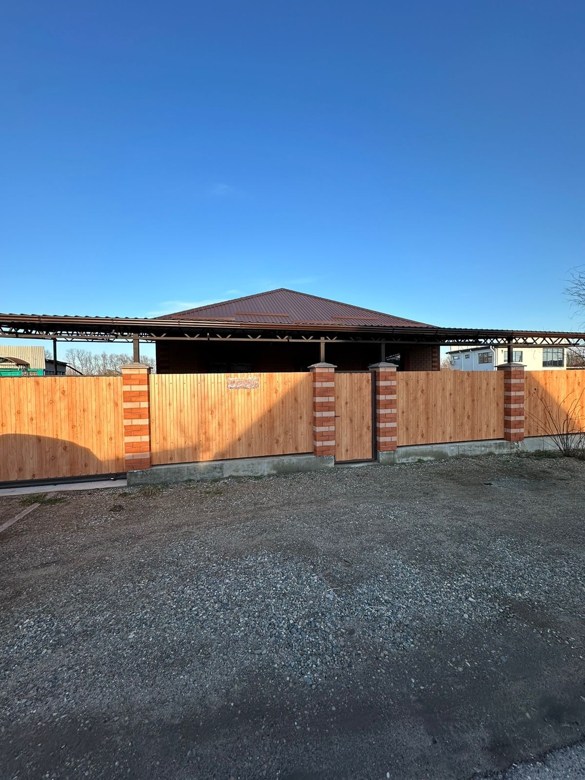 ✔️Участок правильной формы, по периметру установлен забор из металлапрофиля, ворота откатные.
