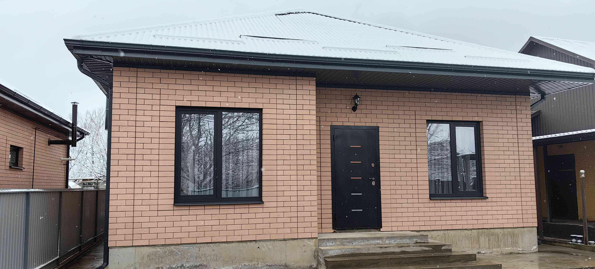 Фасадный забор из профнастила, калитка, ворота