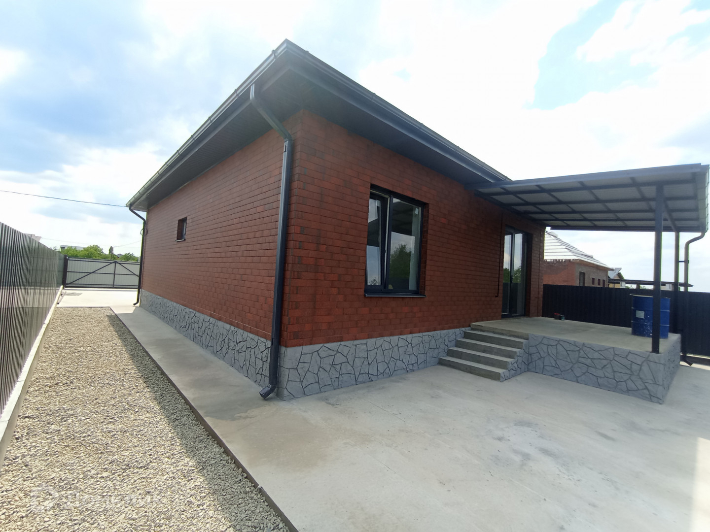 . Двор: бетонирован, навес над крыльцом, откатные ворота, забор по периметру на фундаменте.