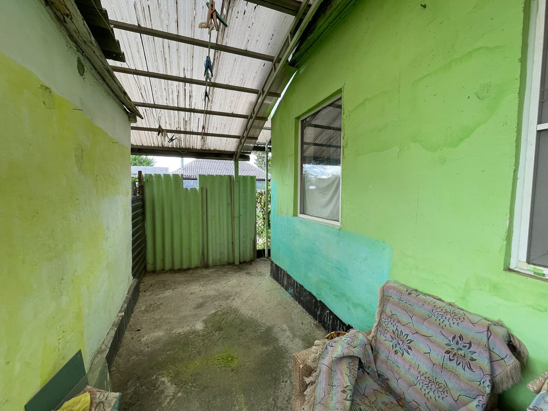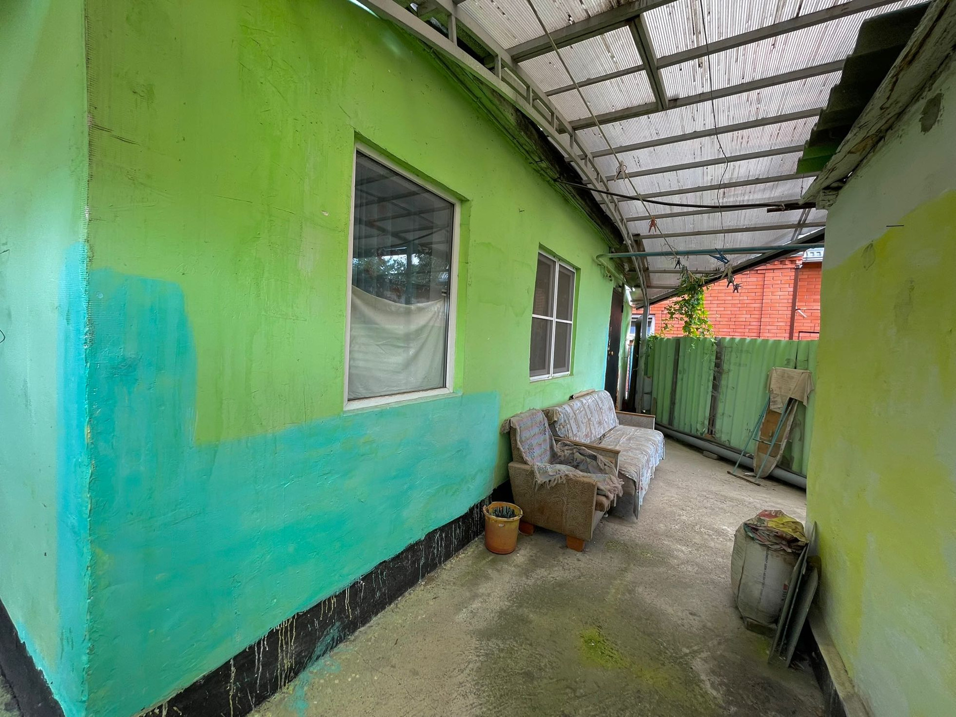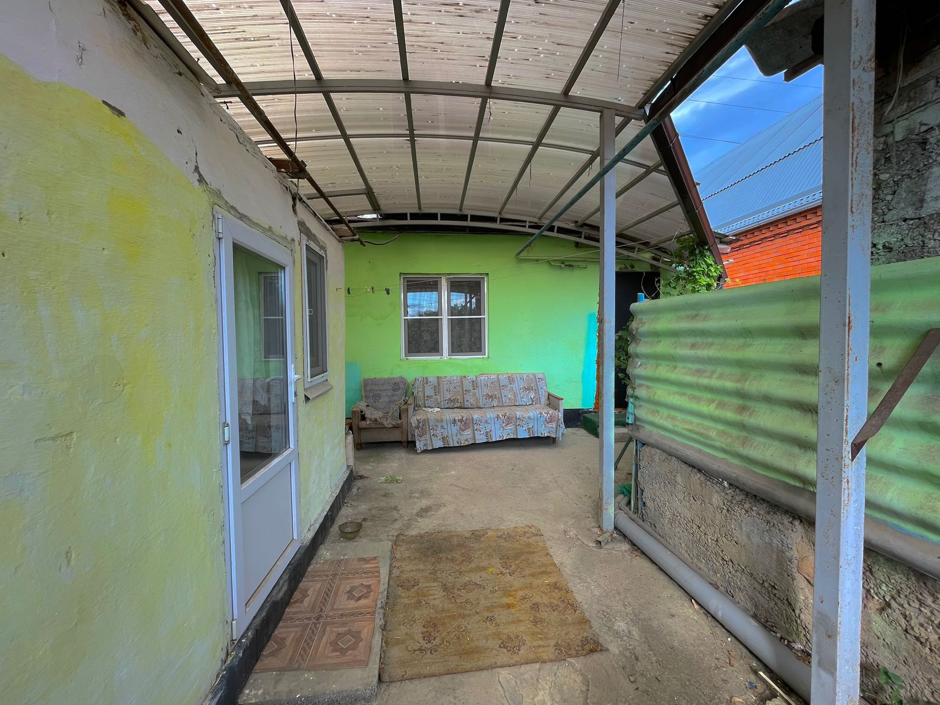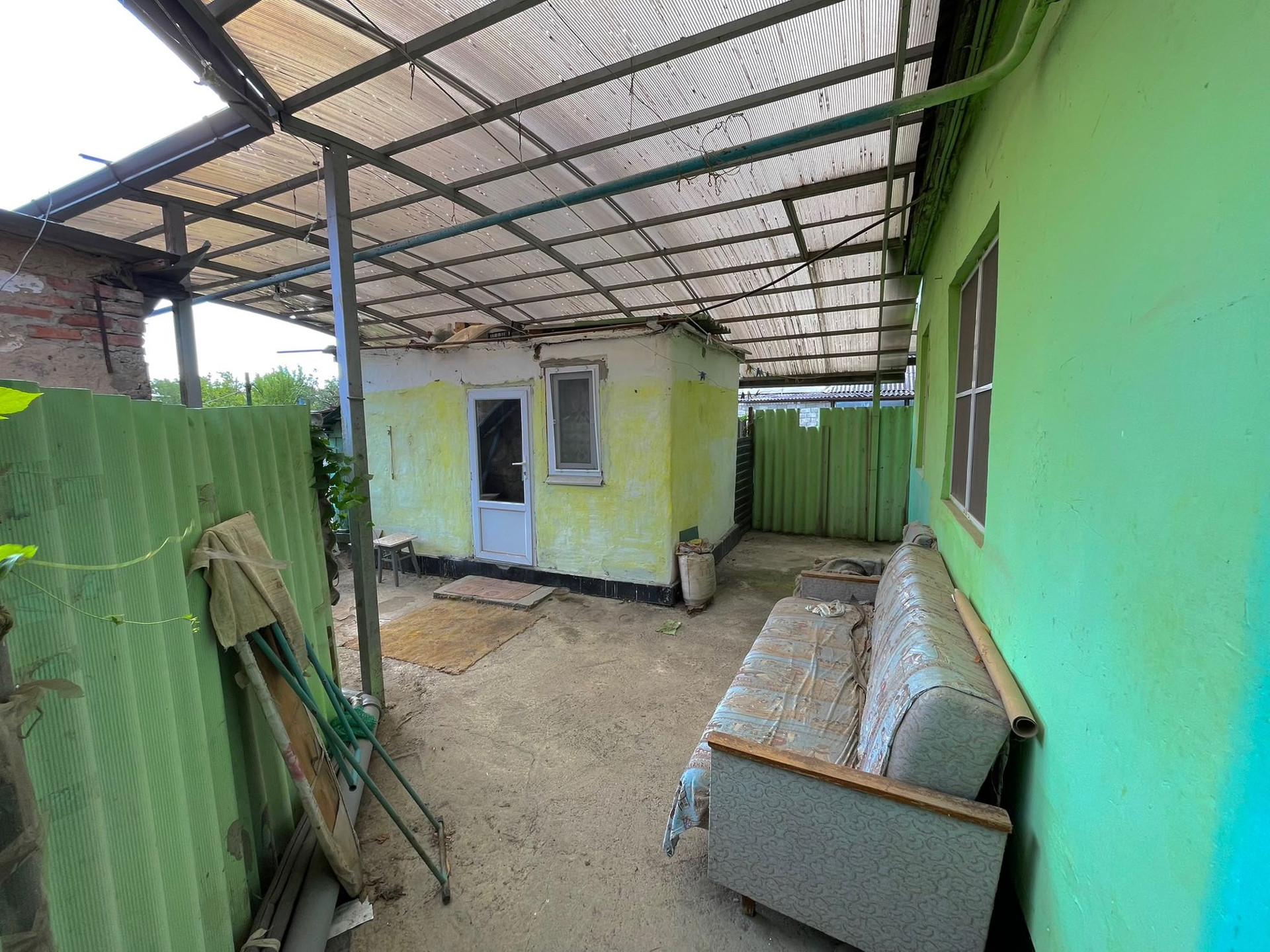 Двор огорожен, что обеспечивает безопасность и уединение.