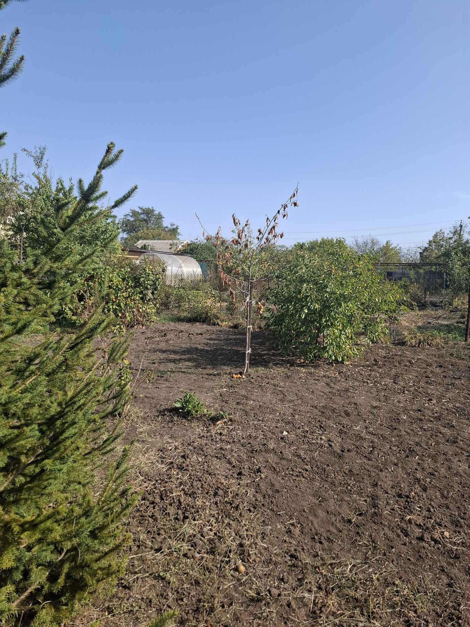 Просторный земельный участок с плодовыми деревьями, ухоженный и обустроенный.
