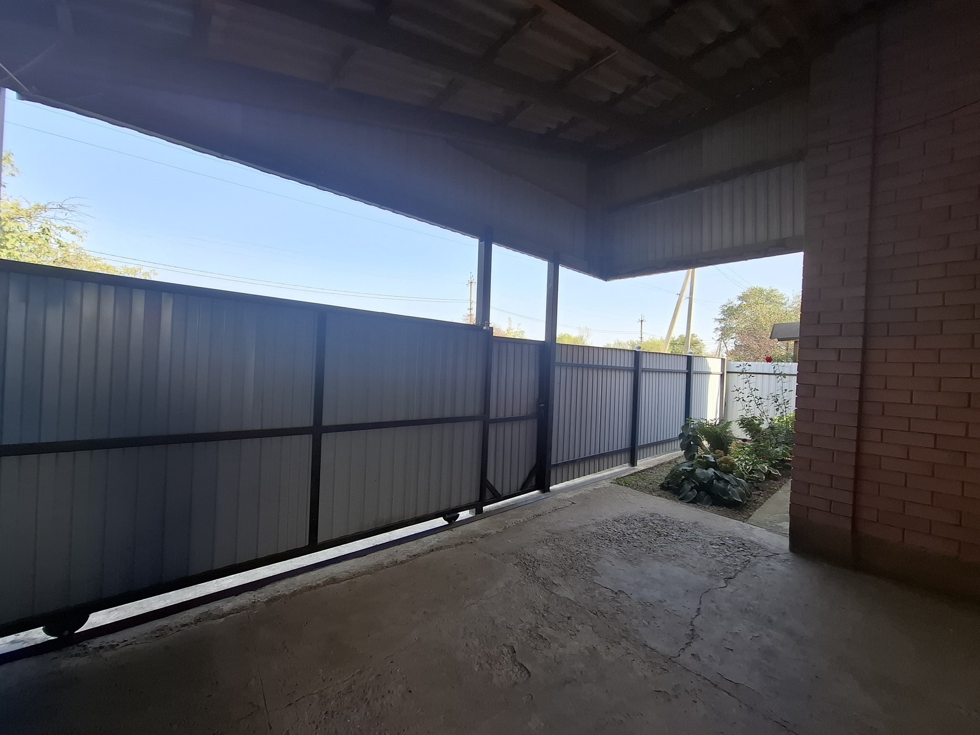 Вход: современные откатные ворота.