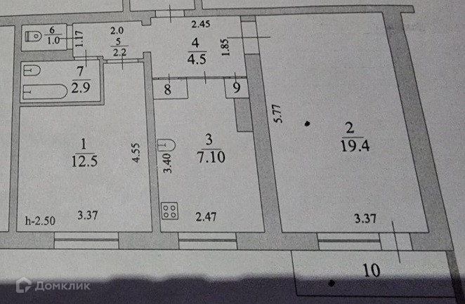 Общая площадь 52 м2
