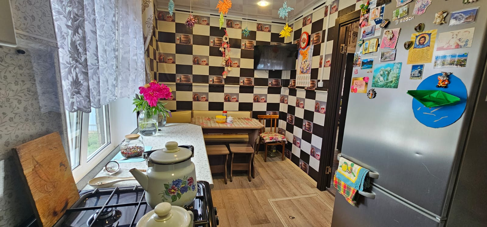 Дом газифицированный, вода. В доме кухня, три комнаты, санузел . Сделан косметический ремонт.
