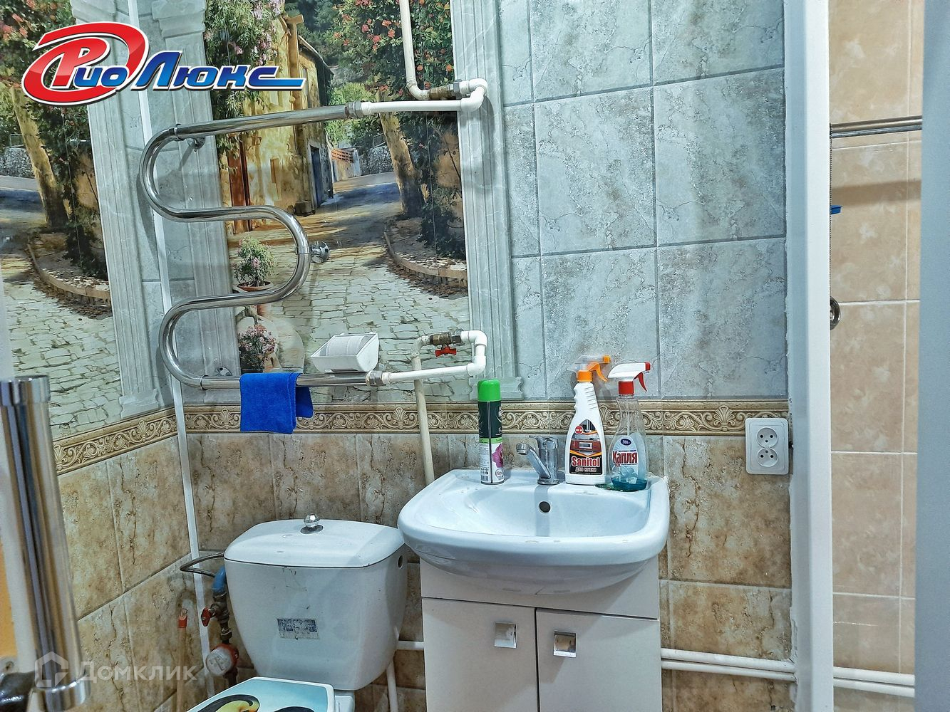 Есть газовая колонка, что является большим плюсом в нашем городе так как всегда есть горячая вода ).