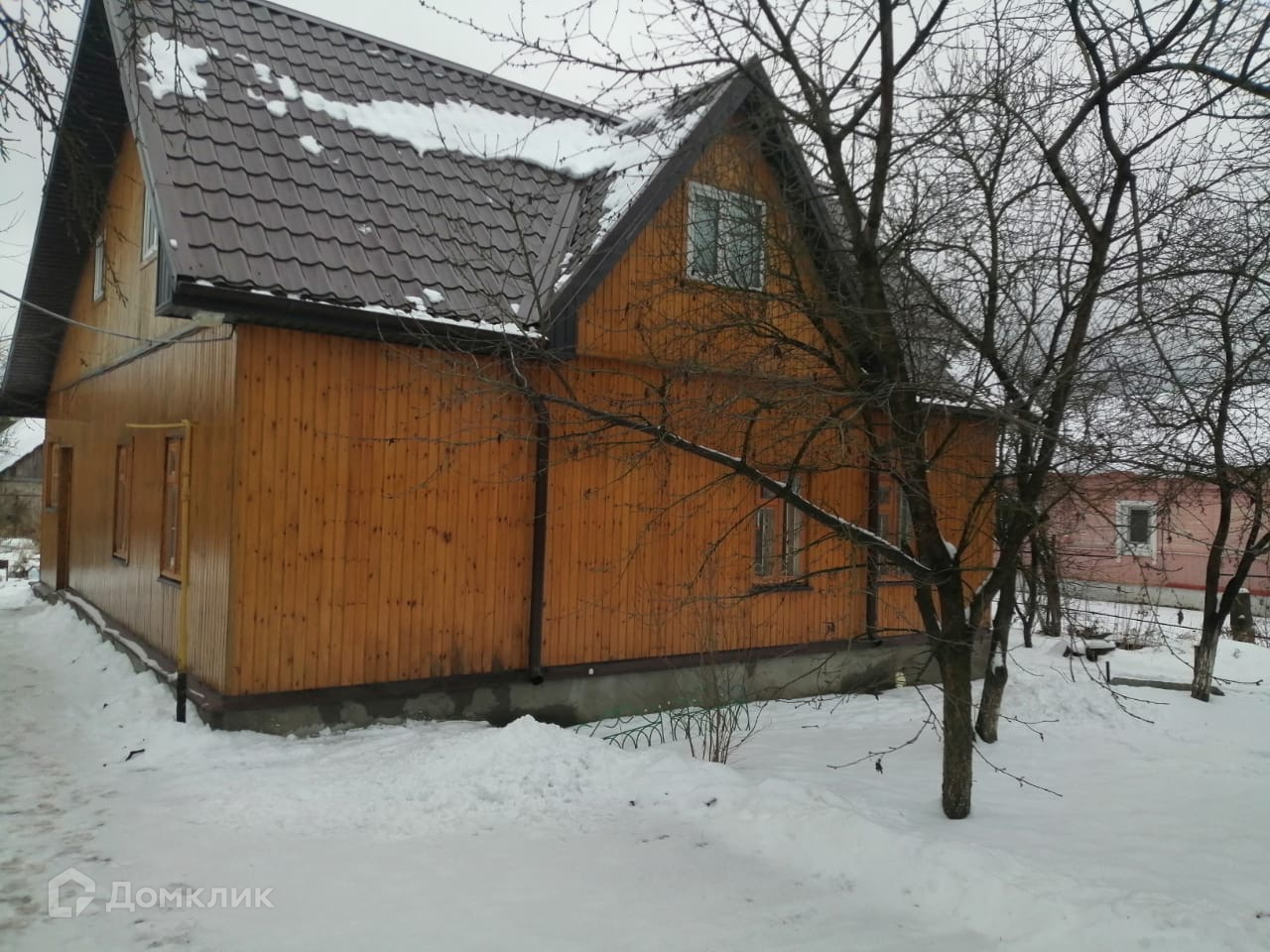 Бревенчатый 2-х этажный дом общей площадью 122 кв. метра, утепленный 150 мм. изоволом и обшит вагонкой, крыша утеплена так-же изоволом 150 мм. и покрыта металлочерепицей. Расположен на участке 7.77 сотки огороженный сеткой рабицей, а с лицевой стороны металлопрофилем. Из построек на участке гараж и теплица, в доме есть подвал 3 кв. метра.