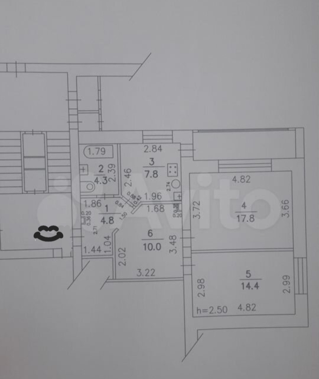Высота потолков 2.5 м
