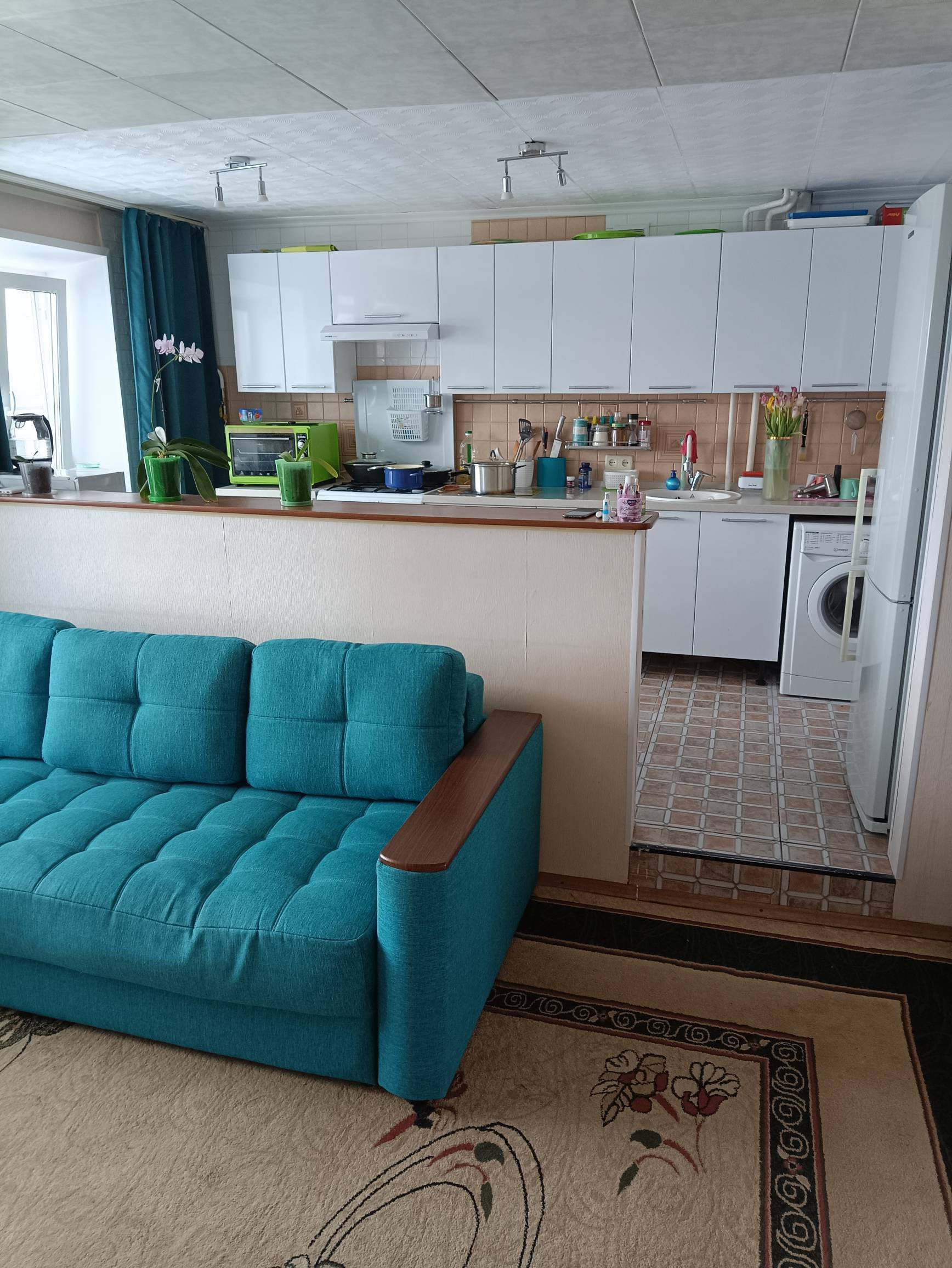 Оставляю часть мебели: кухня новая(ещё нет года),диван в зале(на фото). Встроенный шкаф купе в коридоре(новый) во всю стену(более 3х м длинной)