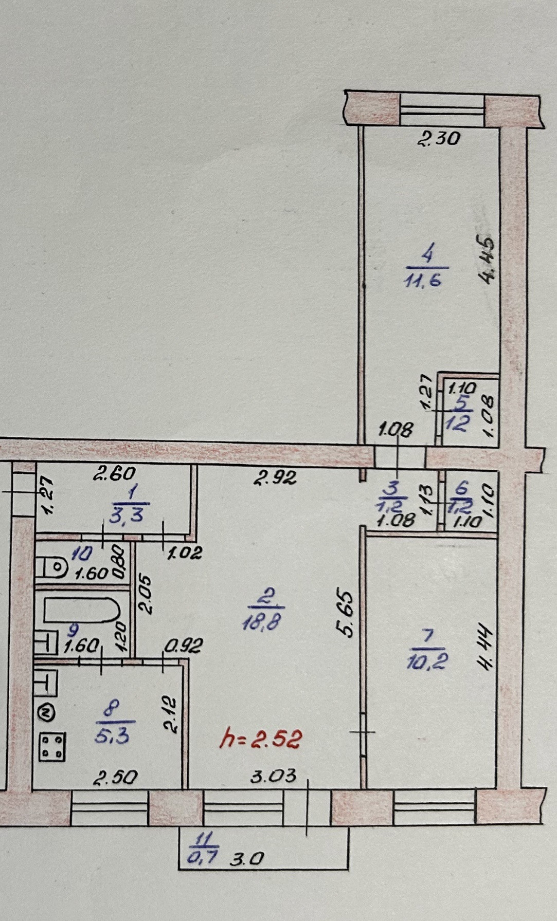 Санузел раздельный, полы теплые, новая сантехника, все трубы заменены.